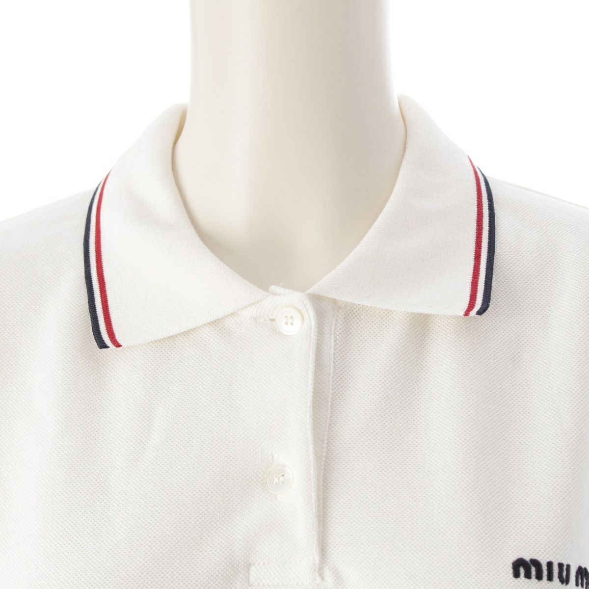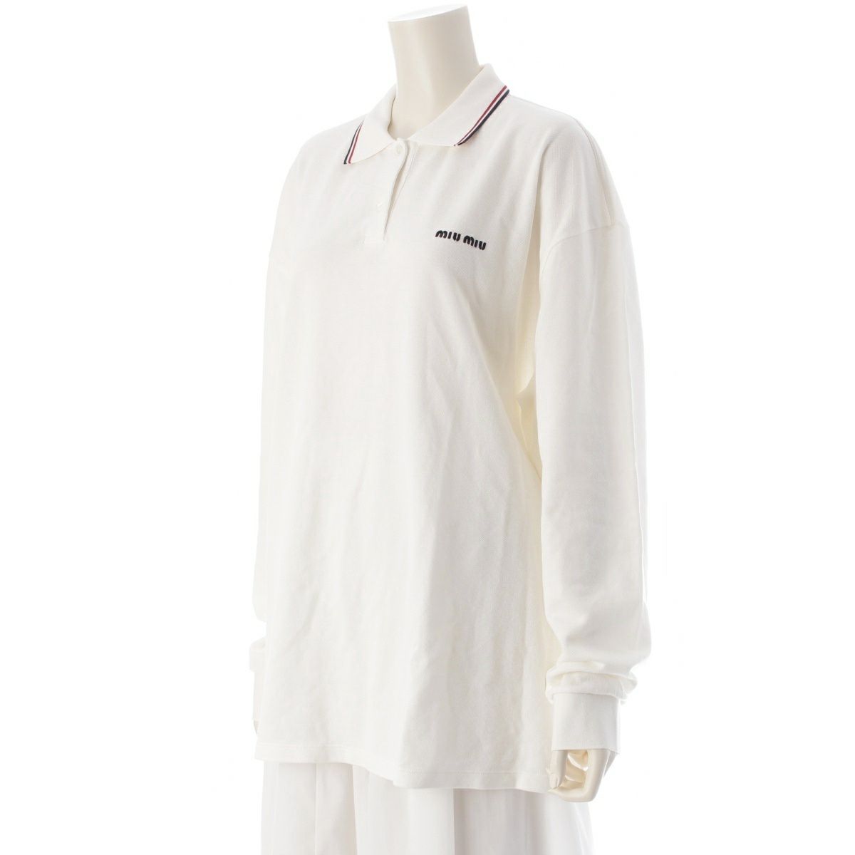 ミュウミュウ 25SS コットンピケ トリコロール ポロシャツ 長袖 トップス MJL019 ホワイト M