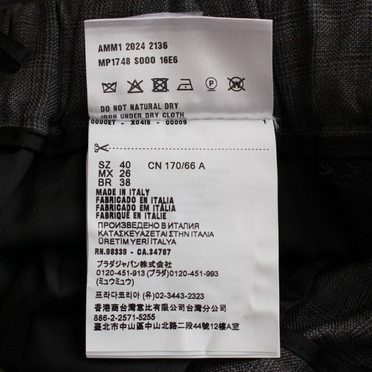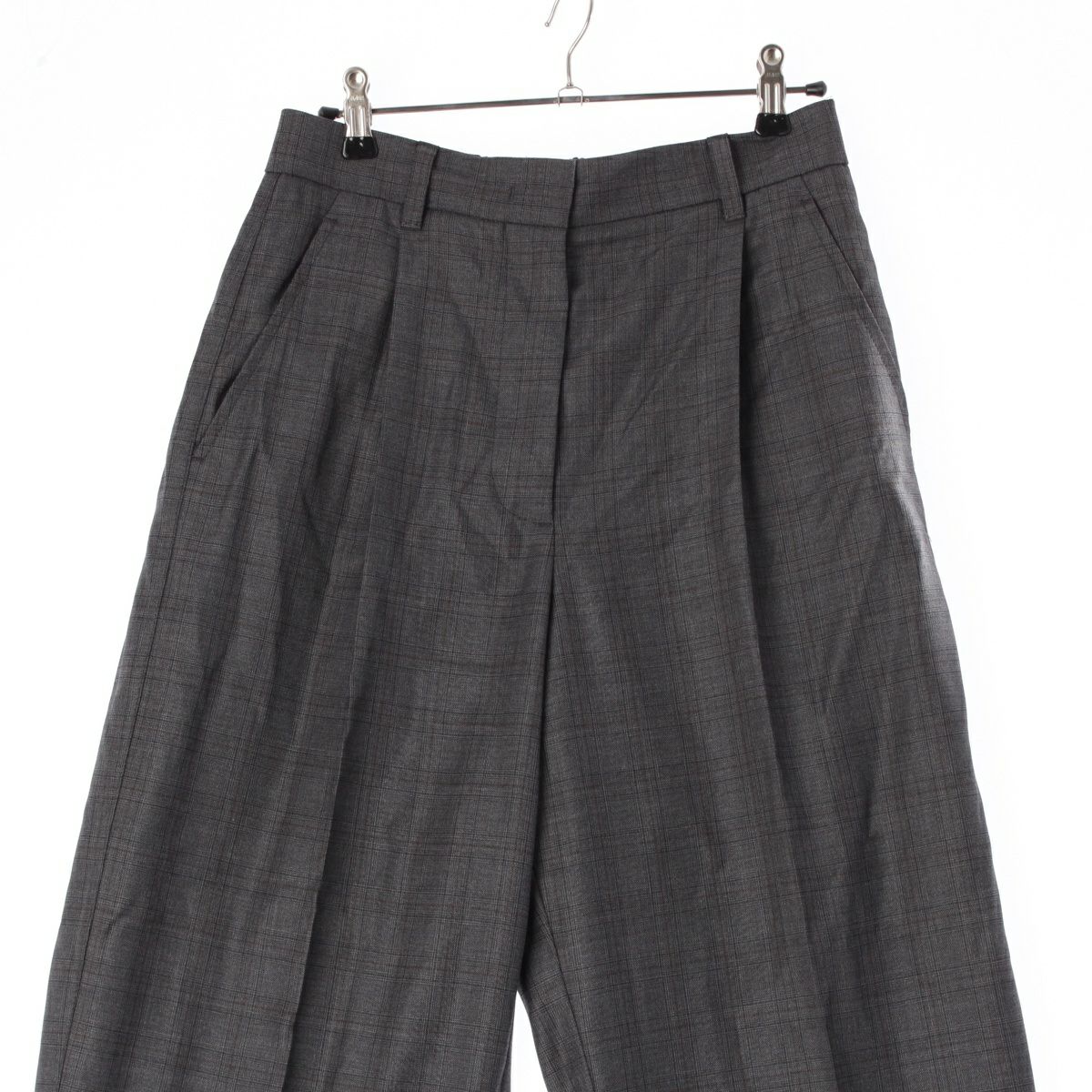 ミュウミュウ 24-25年 SS プリンスオブウェールズ ウール スラックス チェック パンツ ボトムス MP1748 グレー 40