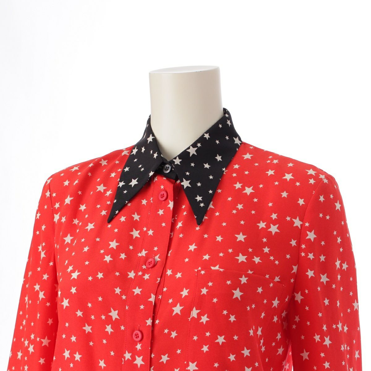 ミュウミュウ 18年 星 スター ブラウス シャツ トップス MK1335 レッド 38
