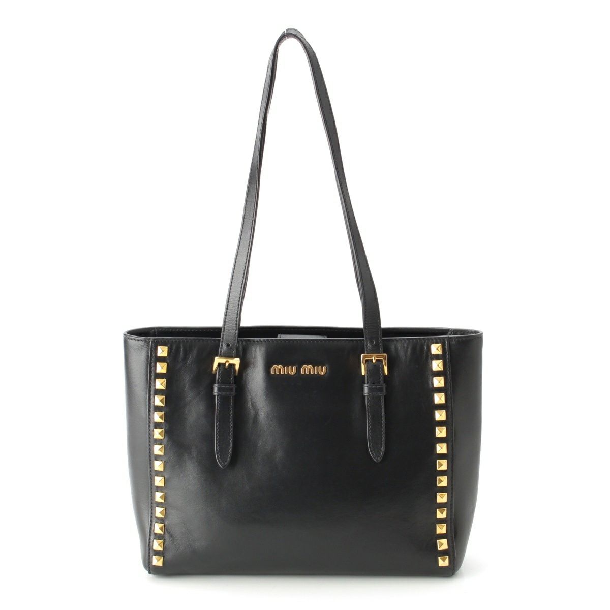 ミュウミュウ レザー スタッズ ショルダーバッグ 2WAY ハンド トート RR1906 ブラック