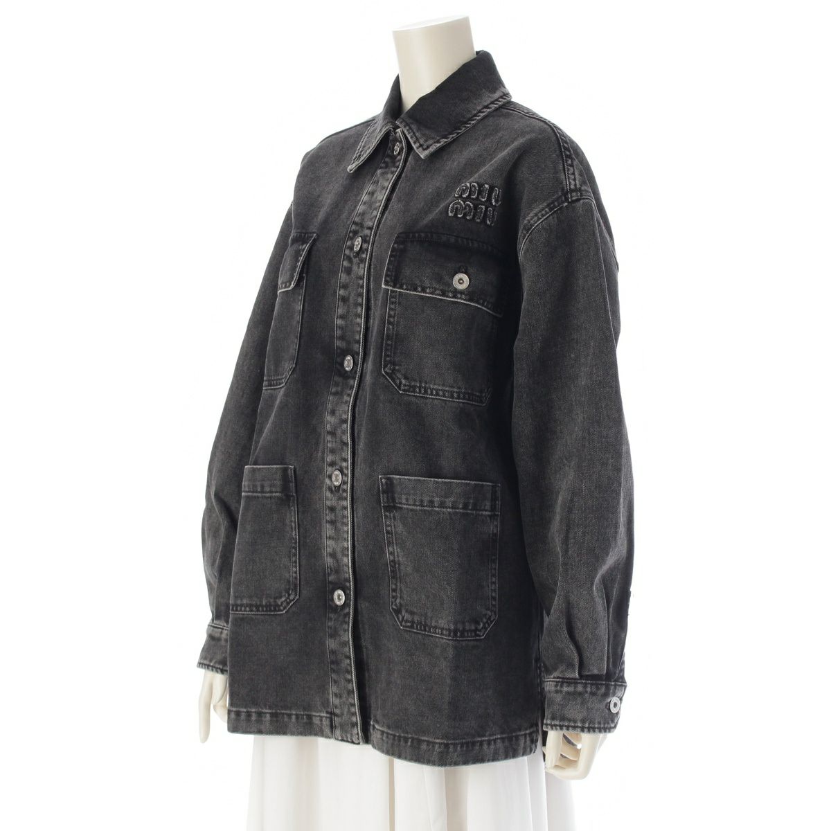 ミュウミュウ 23SS コットン ロゴ 4ポケット デニムジャケット GWB139 ブラック 36