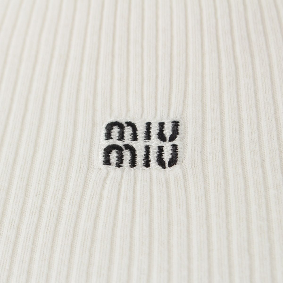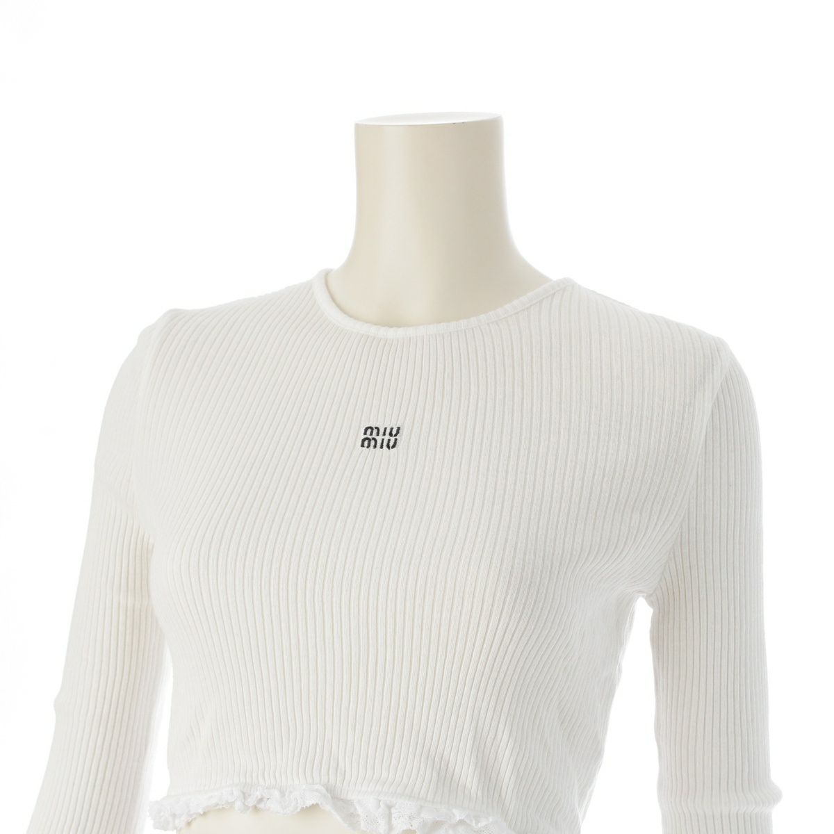ミュウミュウ コットン 刺繍ロゴ レース リブ クロップド 長袖 カットソー トップス ホワイト S
