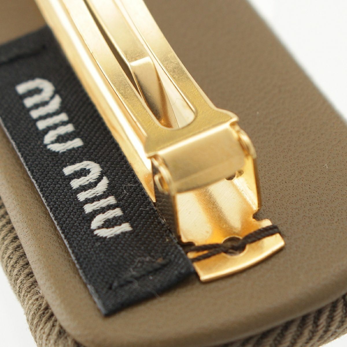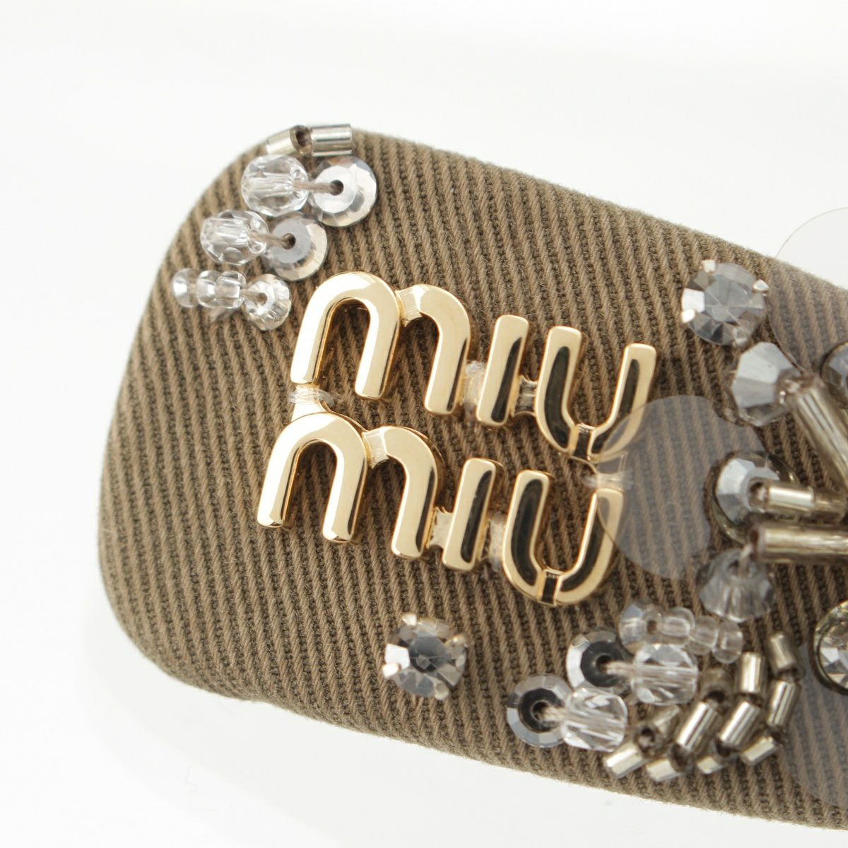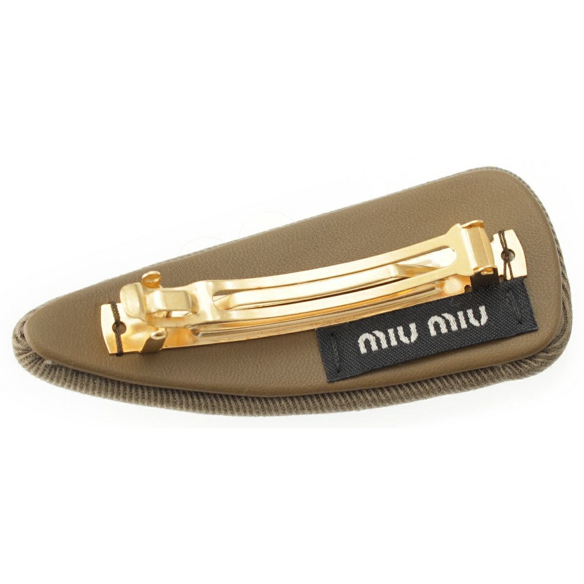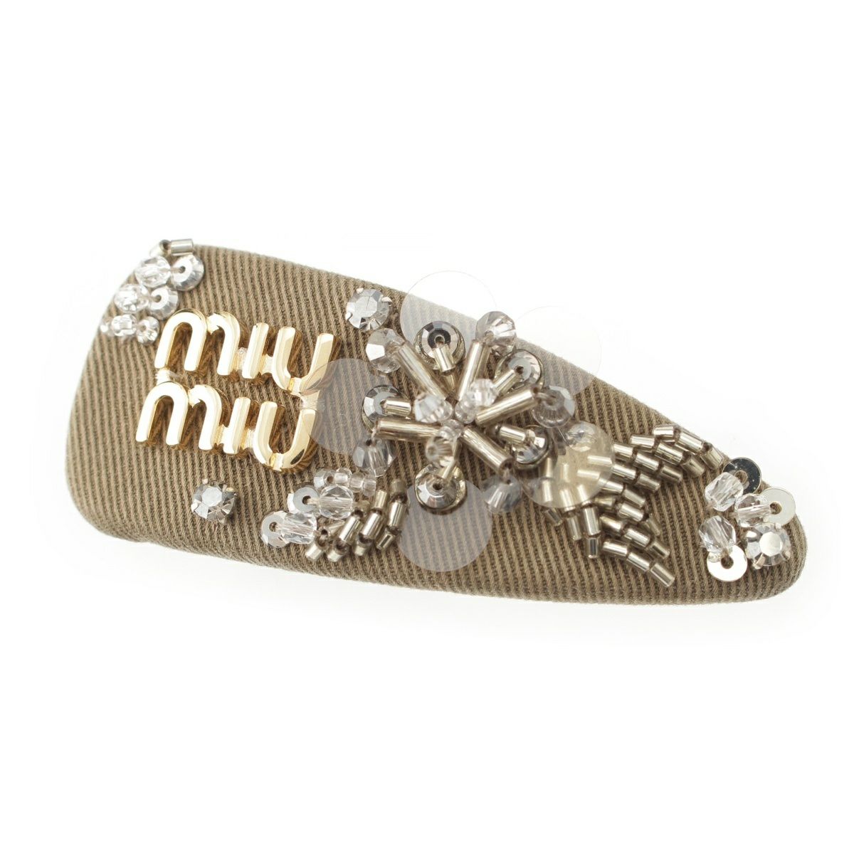 ミュウミュウ ロゴ ラインストーン ビジュー バレッタ ヘアアクセサリー カーキ