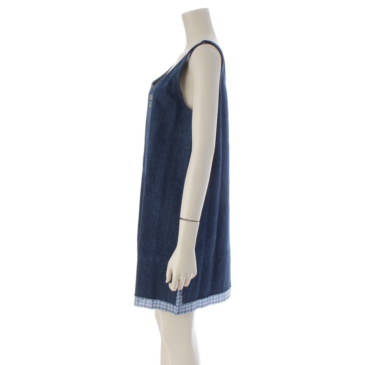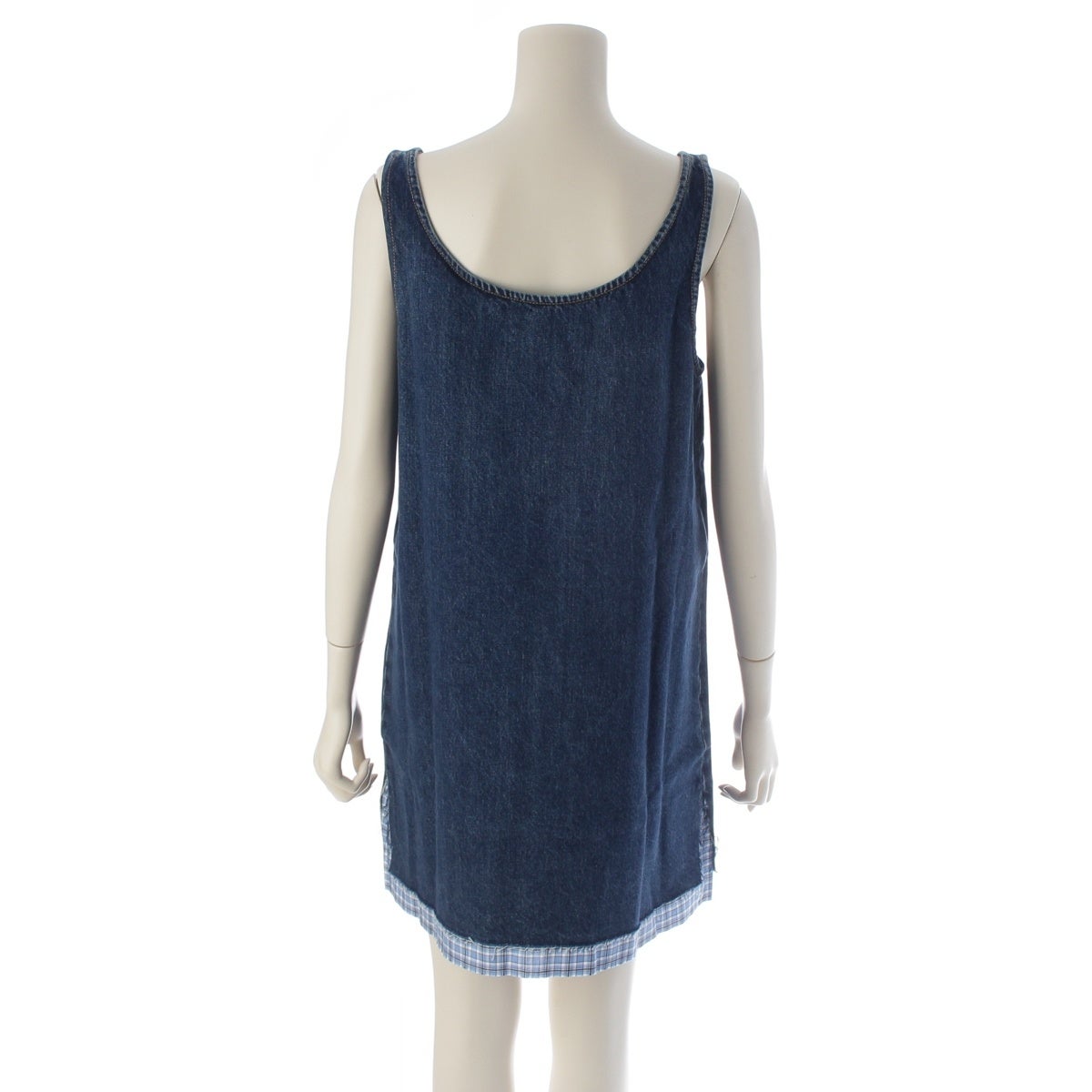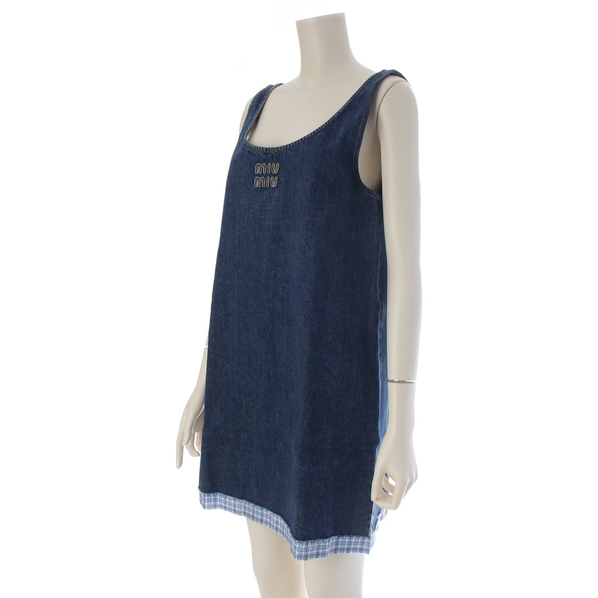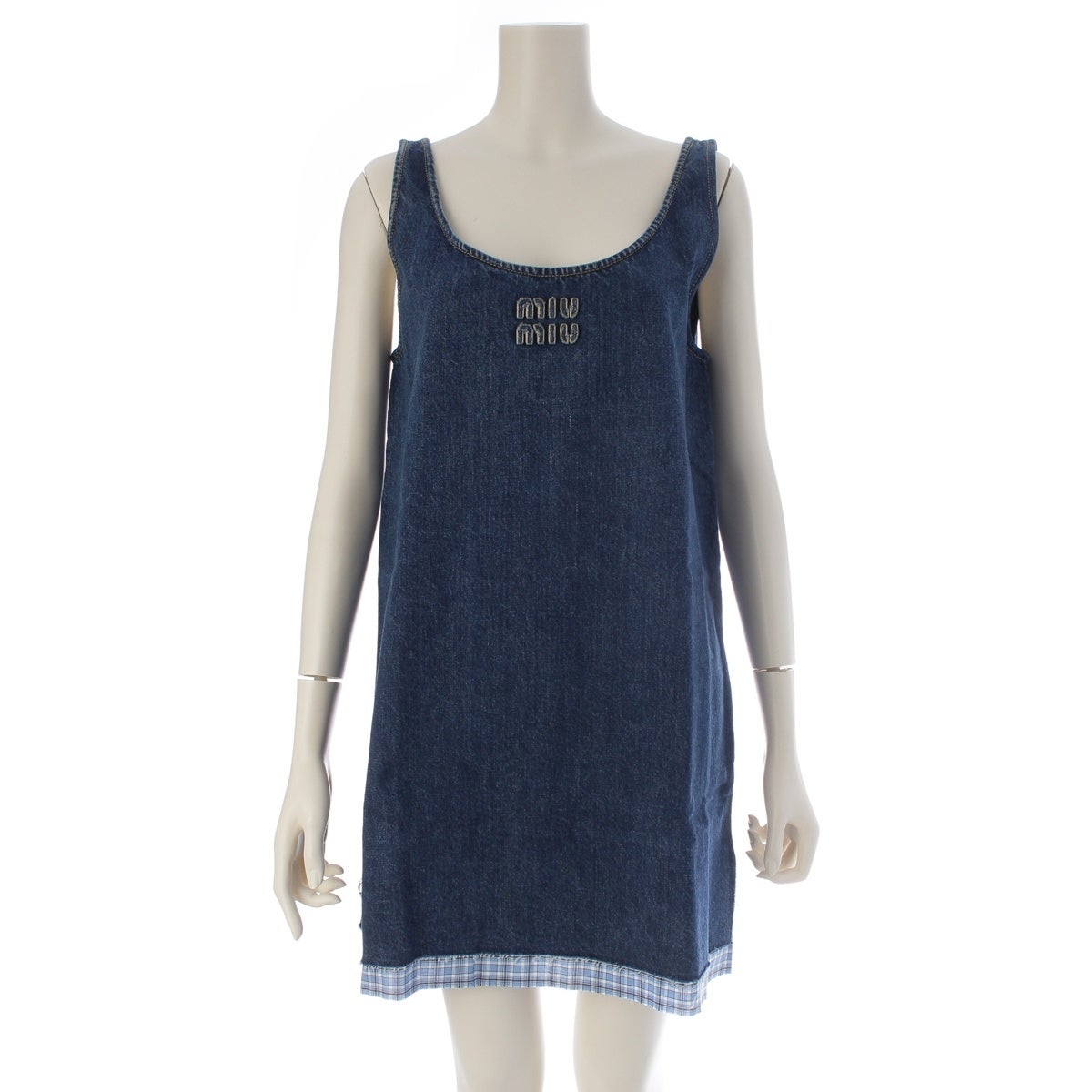 ミュウミュウ コットン デニム ロゴ チェック ミニドレス ノースリーブ ワンピース ブルー 38