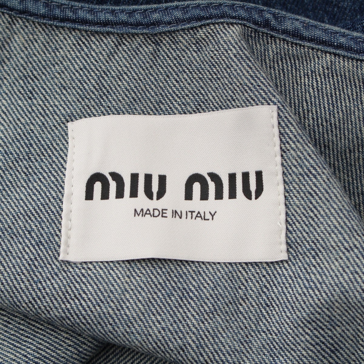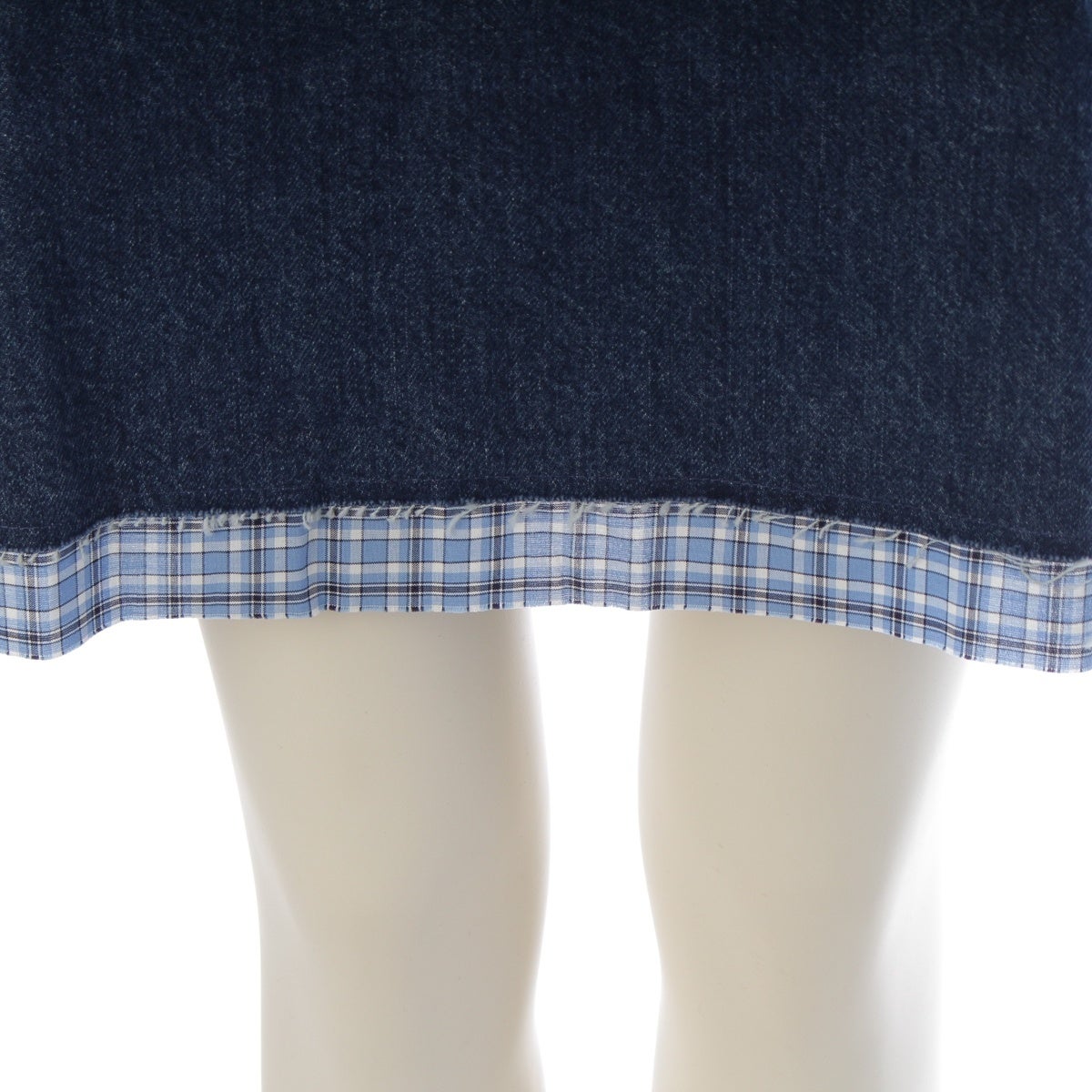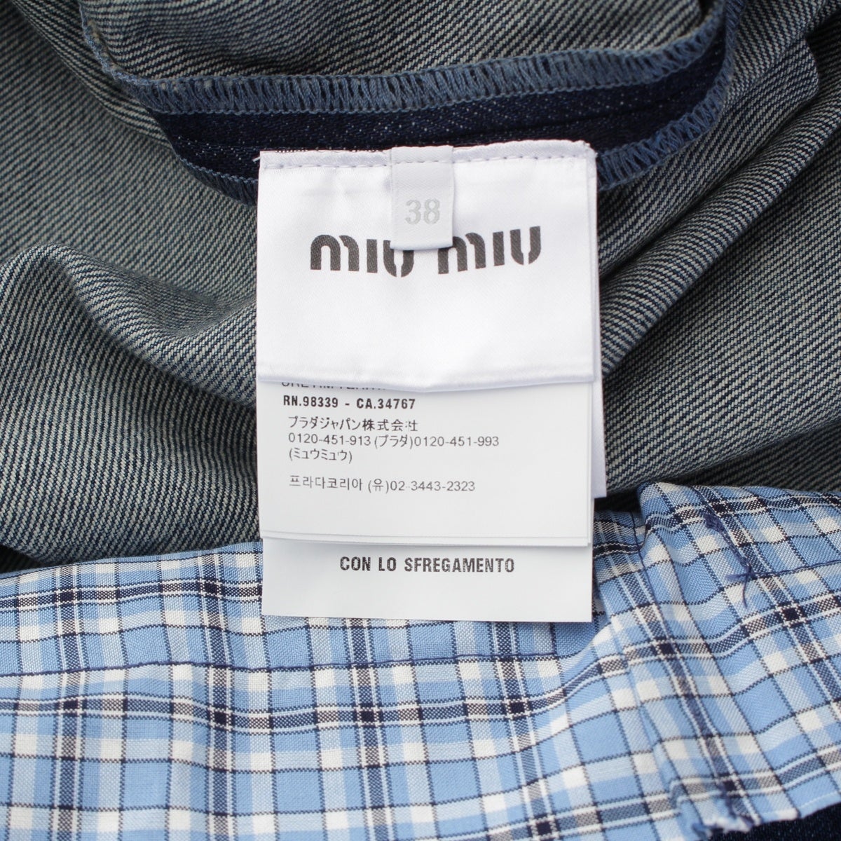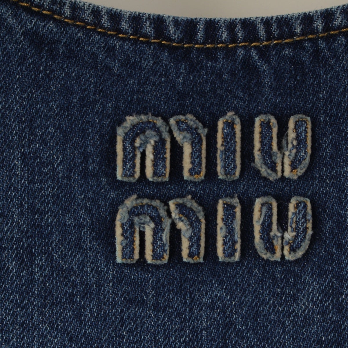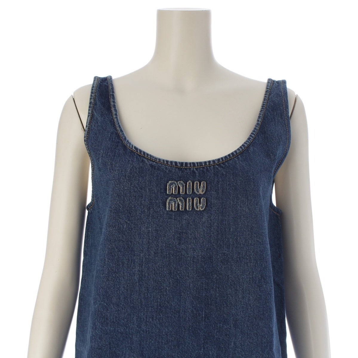 ミュウミュウ コットン デニム ロゴ チェック ミニドレス ノースリーブ ワンピース ブルー 38