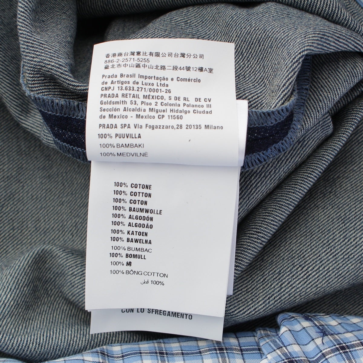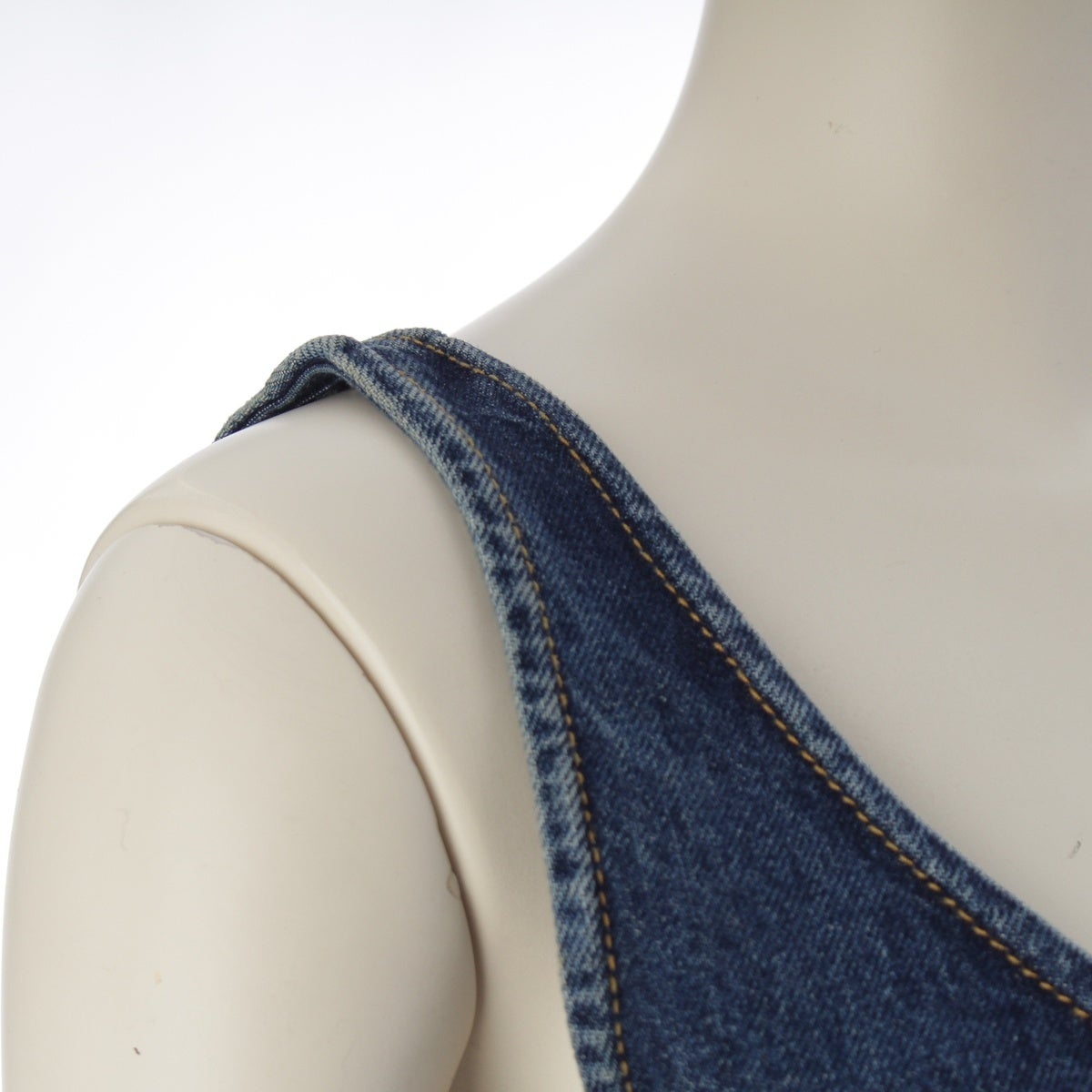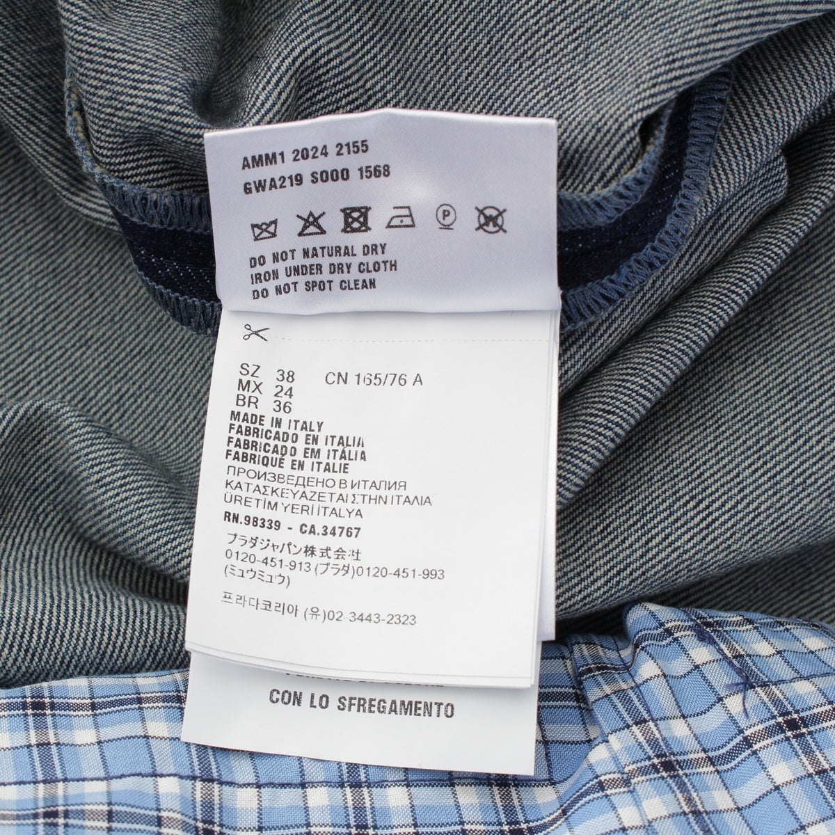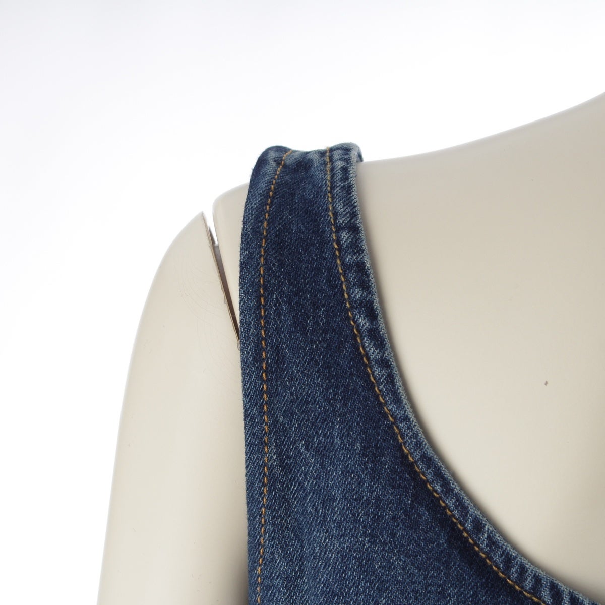 ミュウミュウ コットン デニム ロゴ チェック ミニドレス ノースリーブ ワンピース ブルー 38