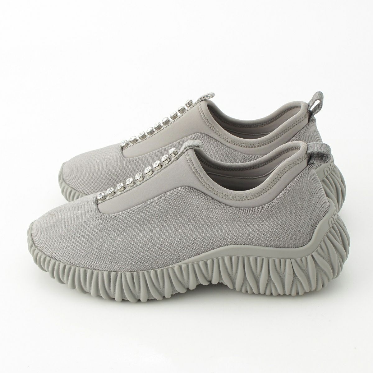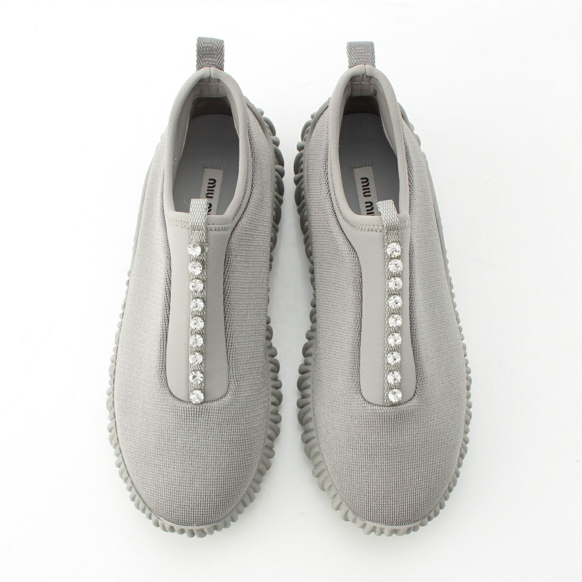 ミュウミュウ ビジュー マテラッセ スリッポン ソックス スニーカー シューズ グレー 37.5