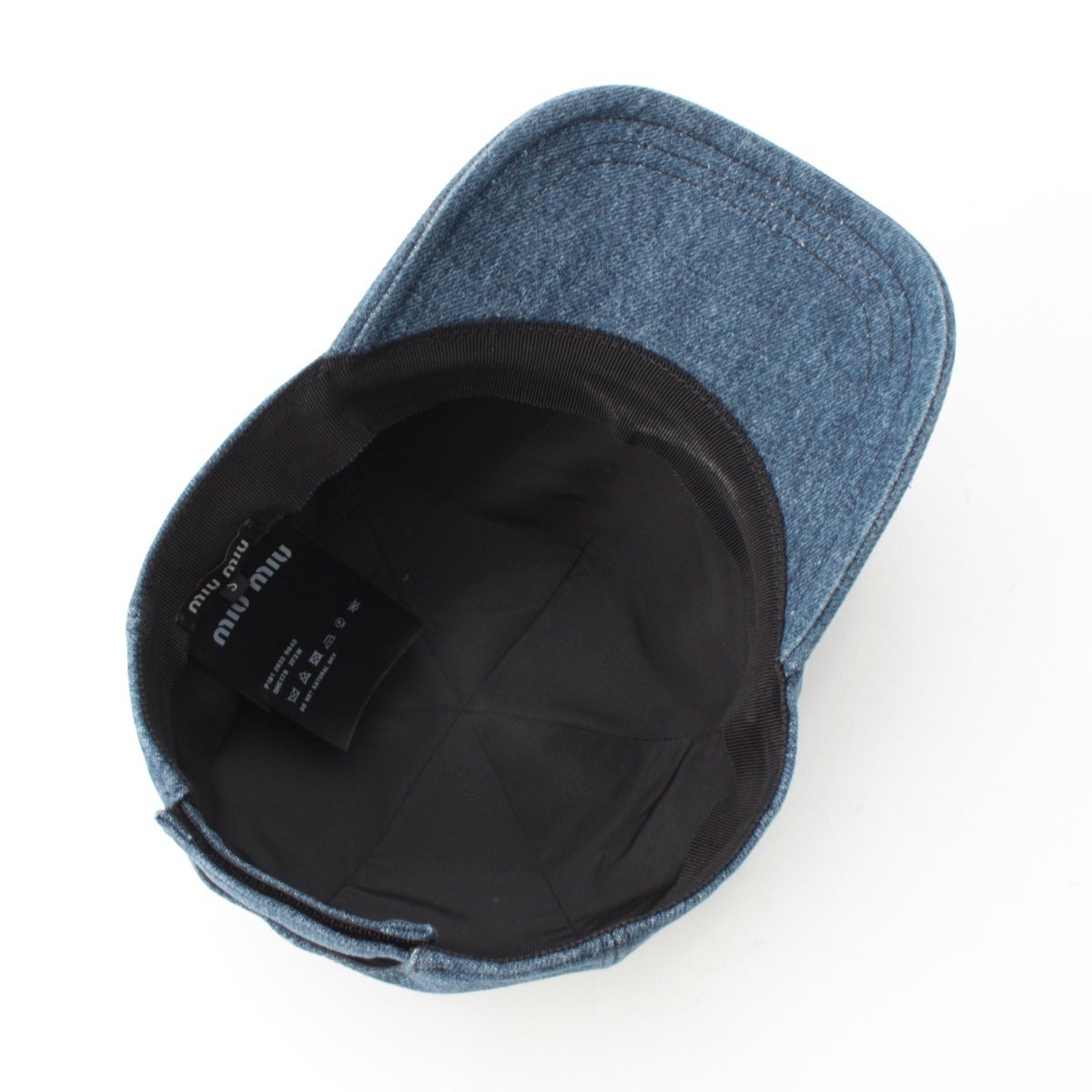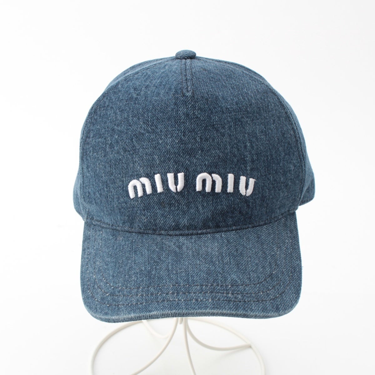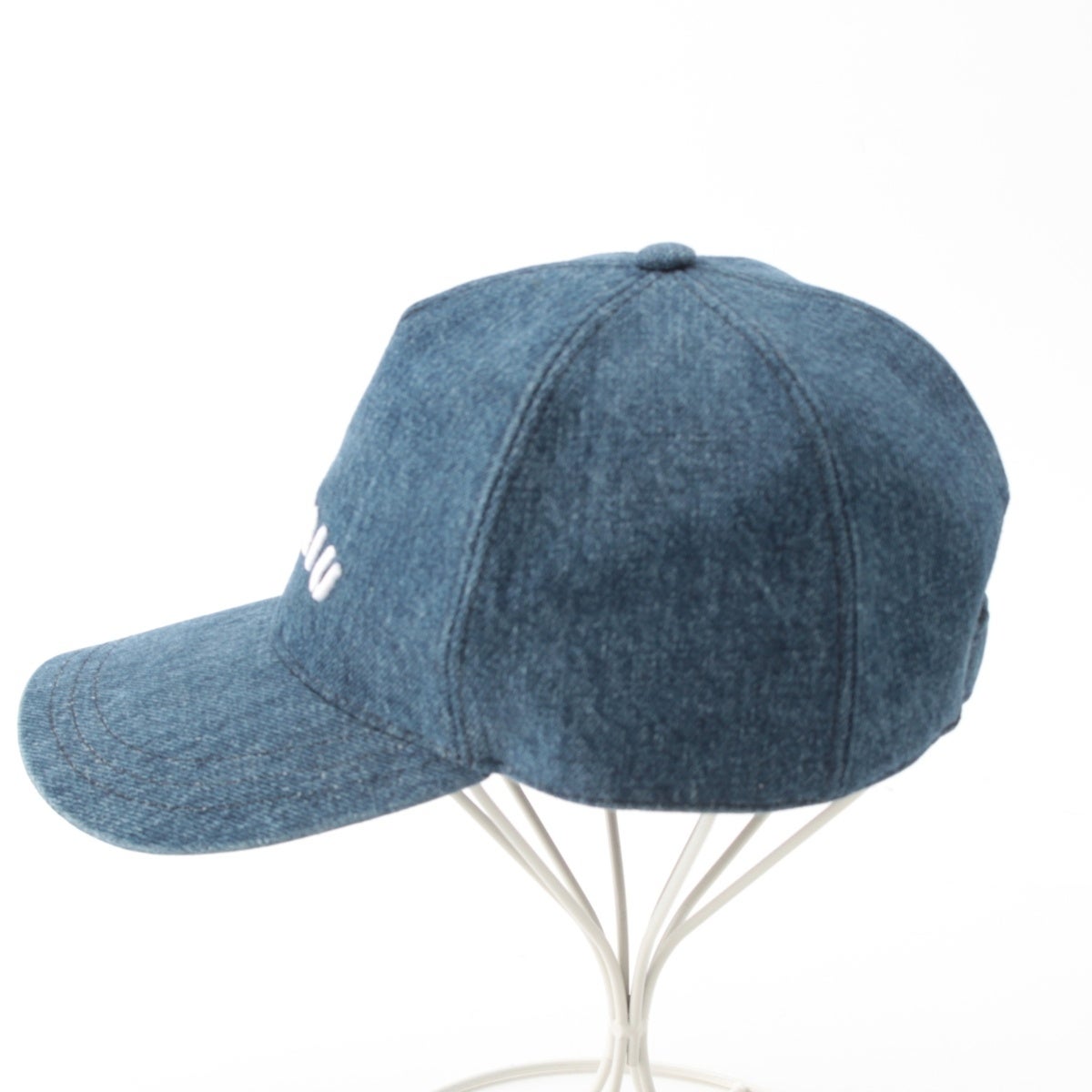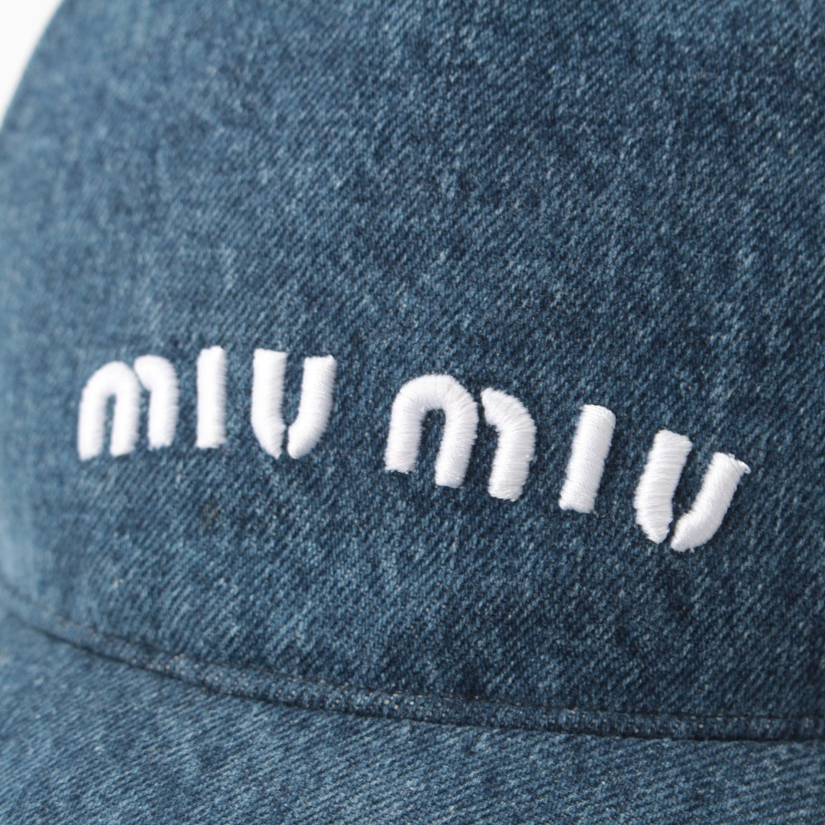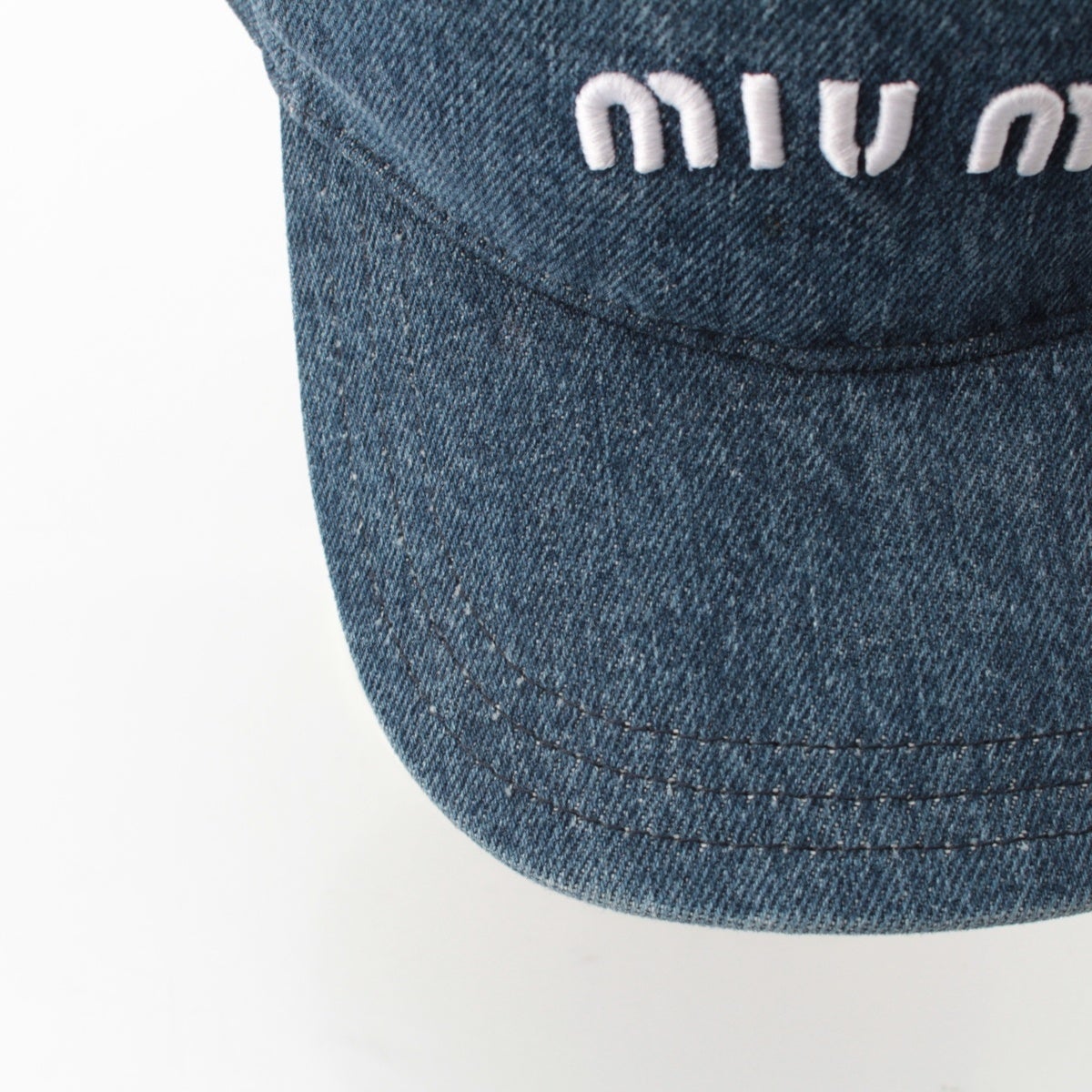 ミュウミュウ 22年 ロゴ刺繍 デニム キャップ 帽子 5HC179 インディゴ ブルー S