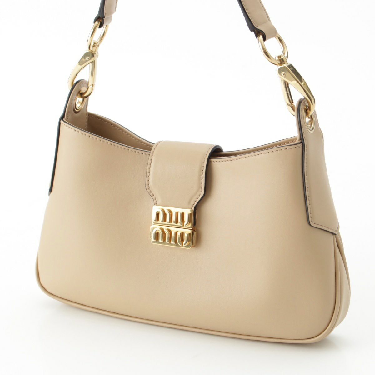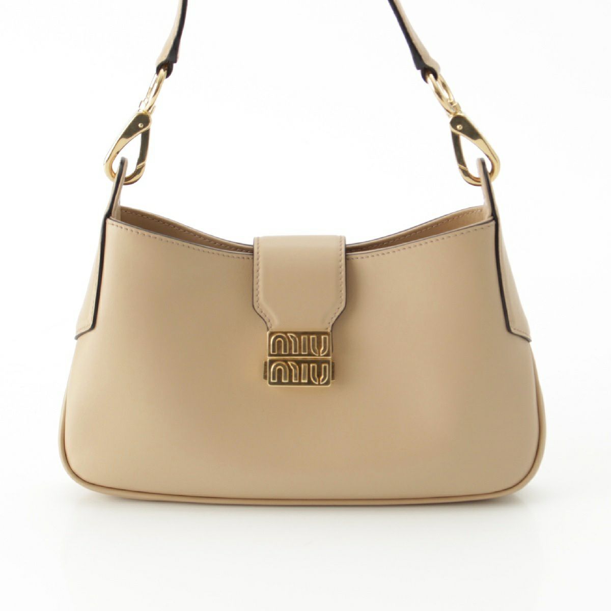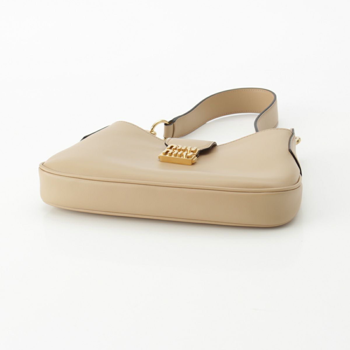 ミュウミュウ レザー ロゴ ホーボー ショルダーバッグ 5BC151 ベージュ