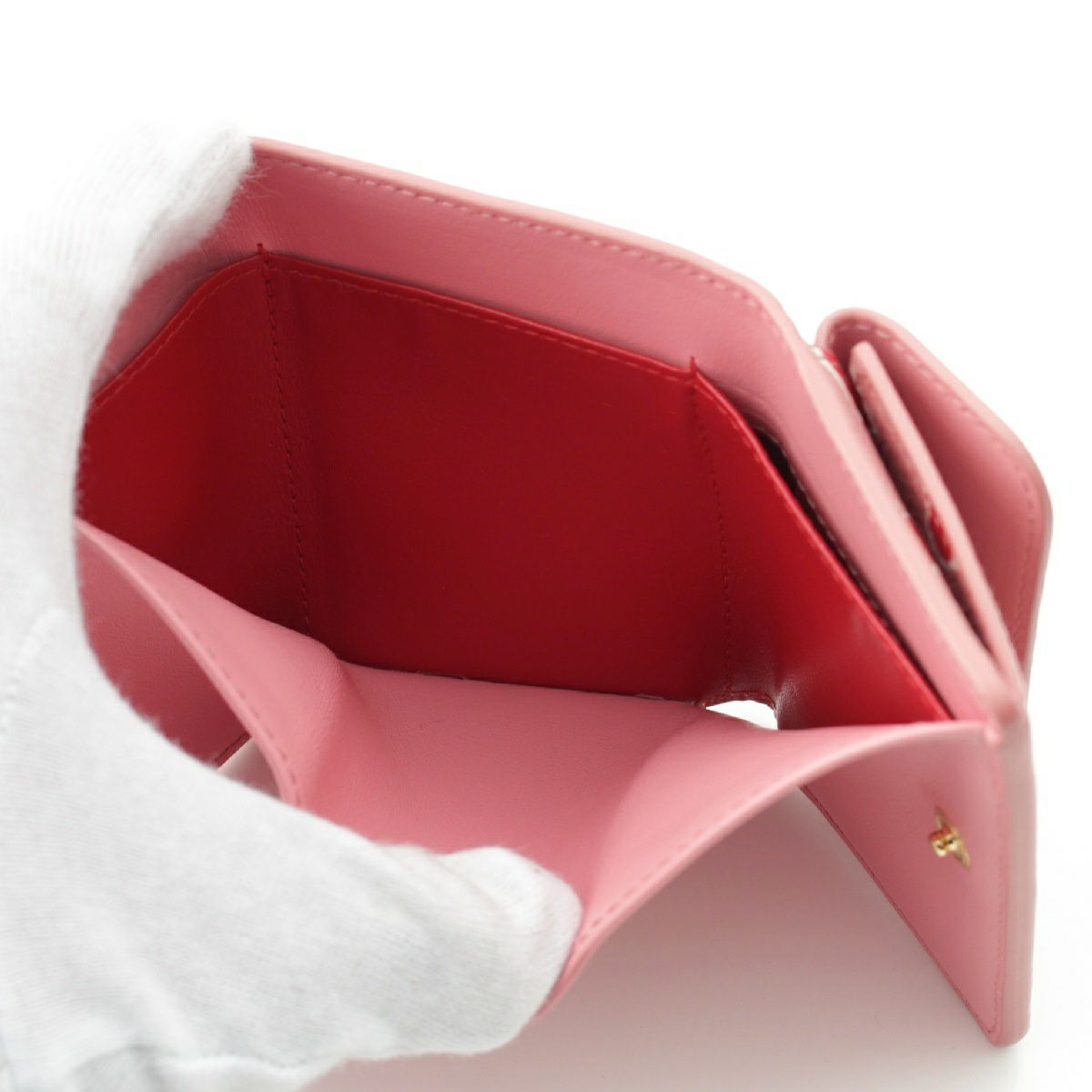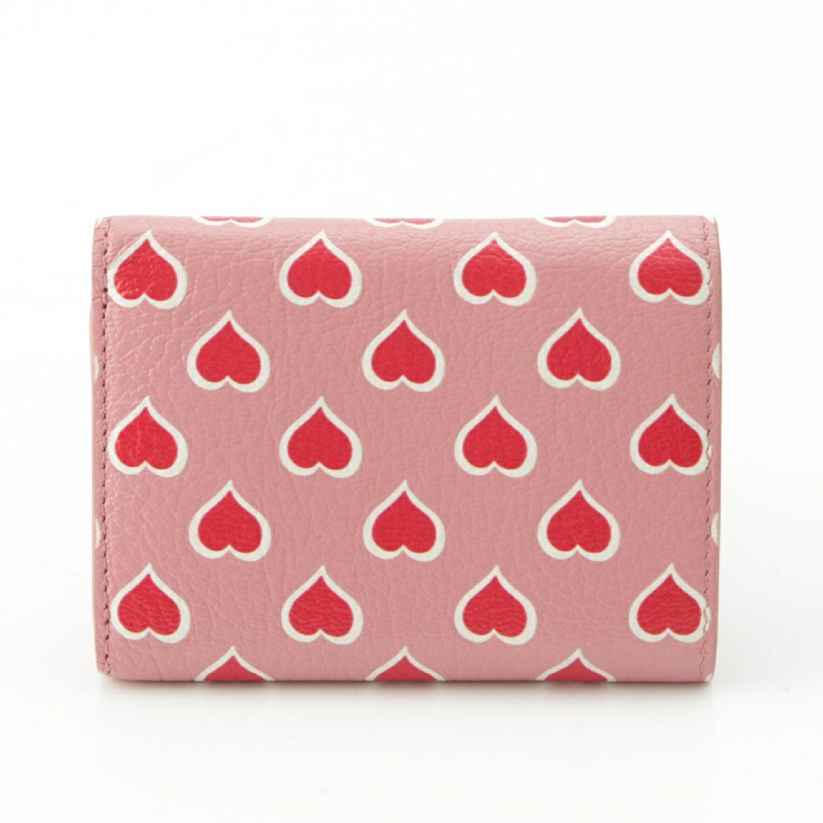 ミュウミュウ マドラスレザー ハートプリント 三つ折り財布 コンパクトウォレット 5MH021 ピンク