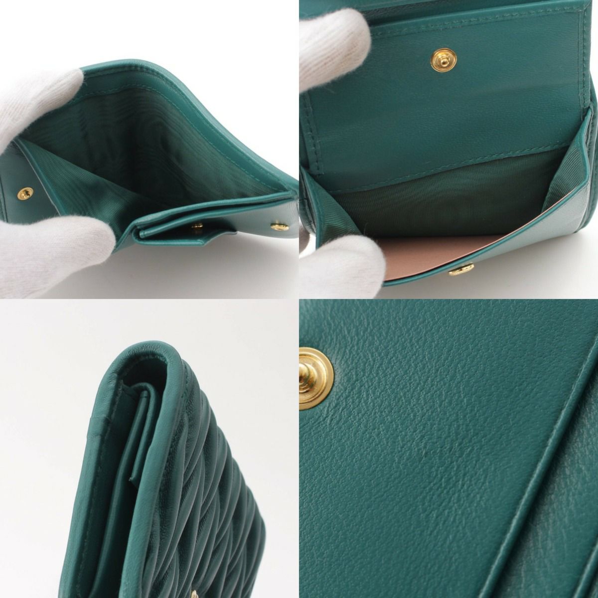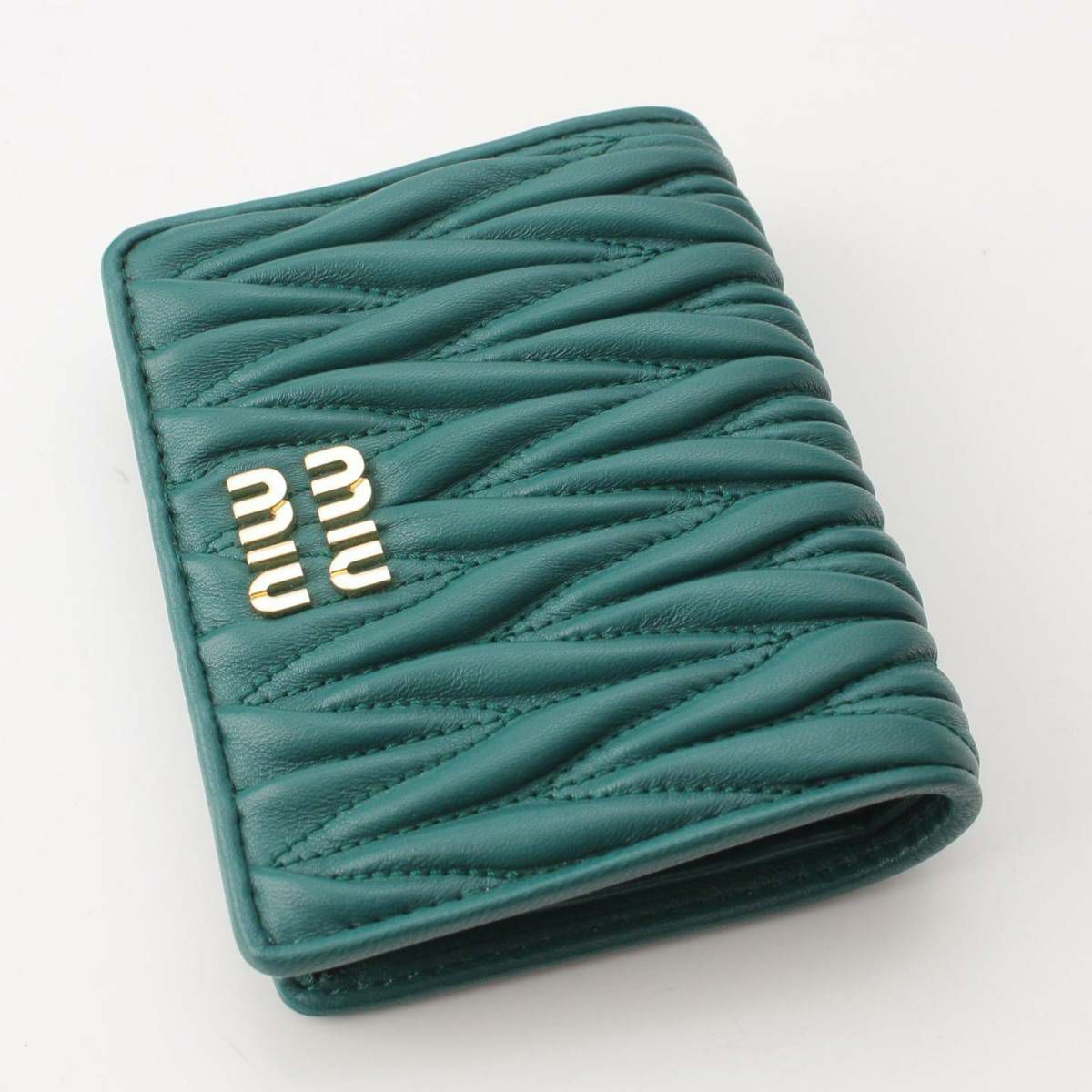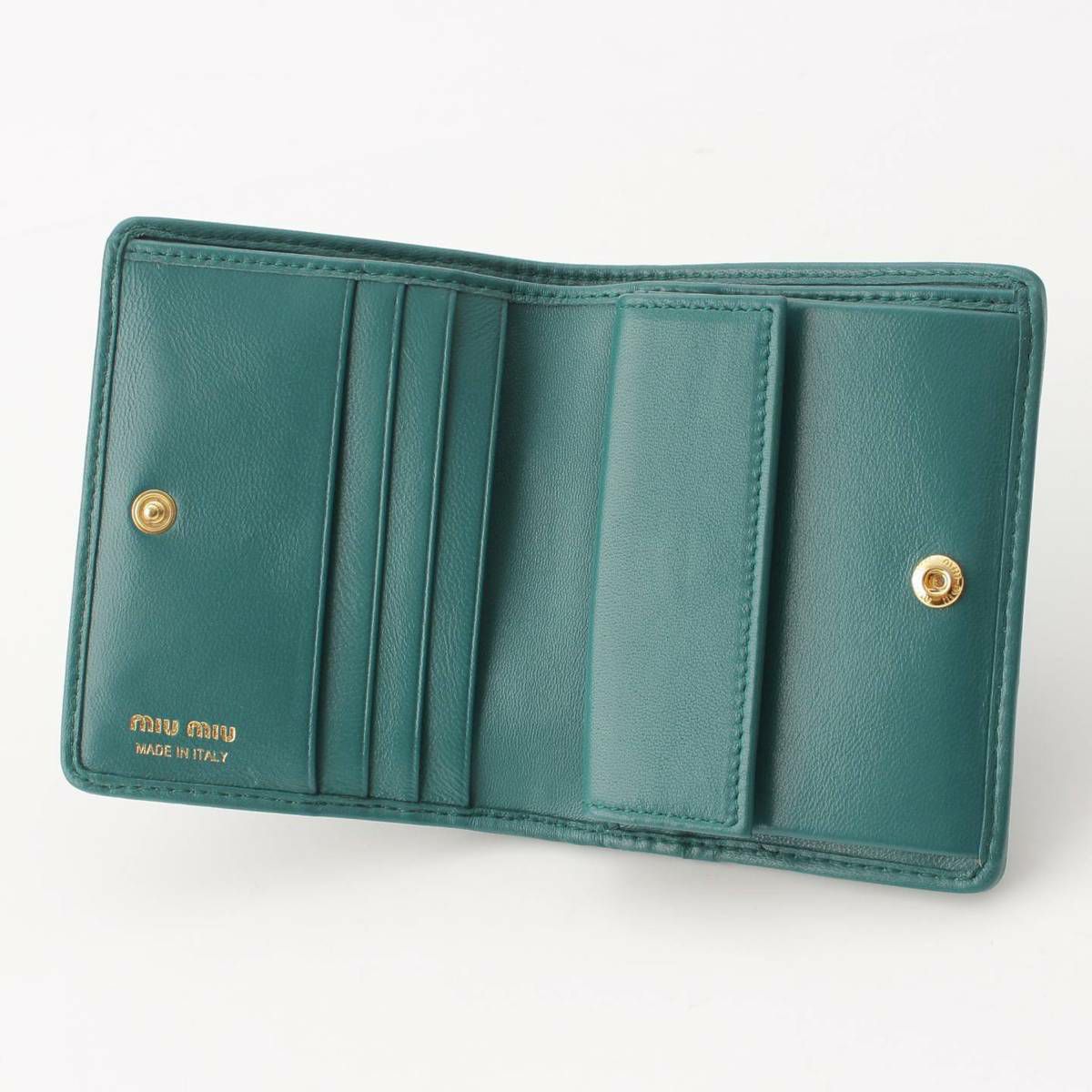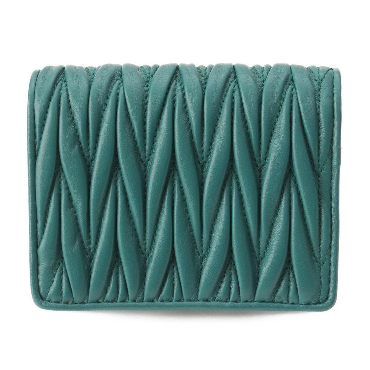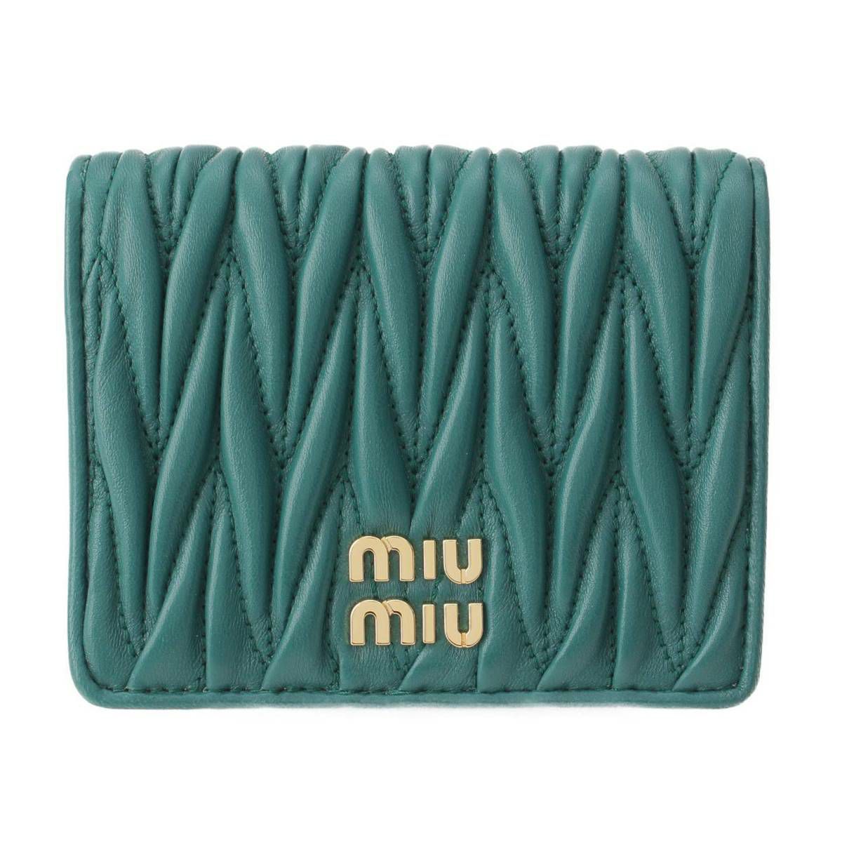 ミュウミュウ Miu Miu マテラッセ ロゴ レザー コンパクトウォレット 二つ折財布 5MV204 グリーン