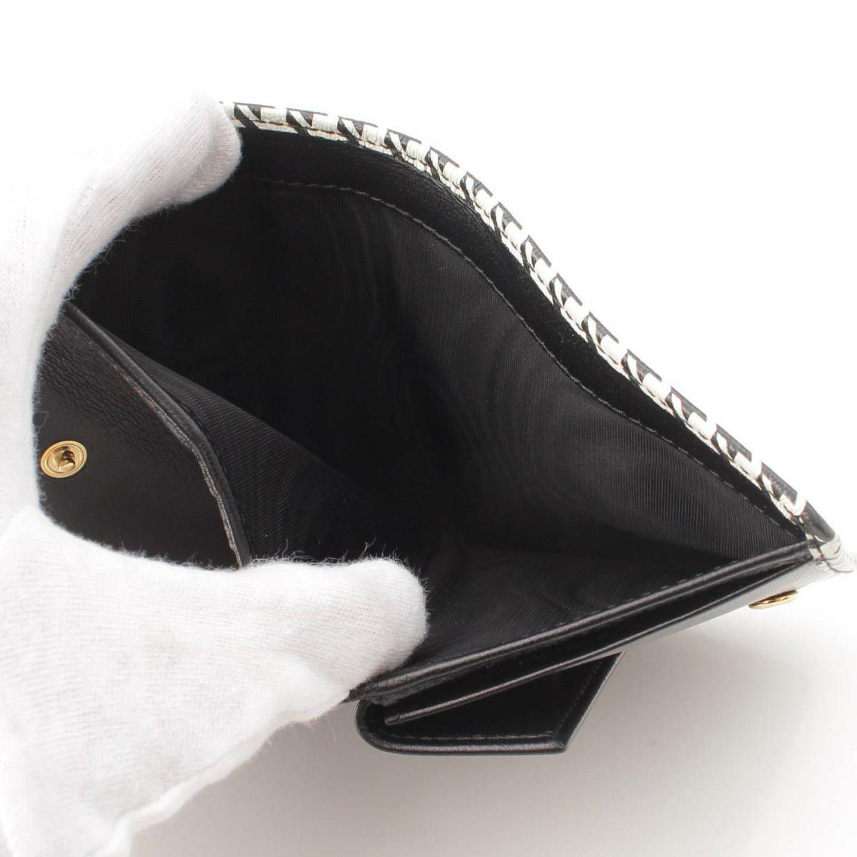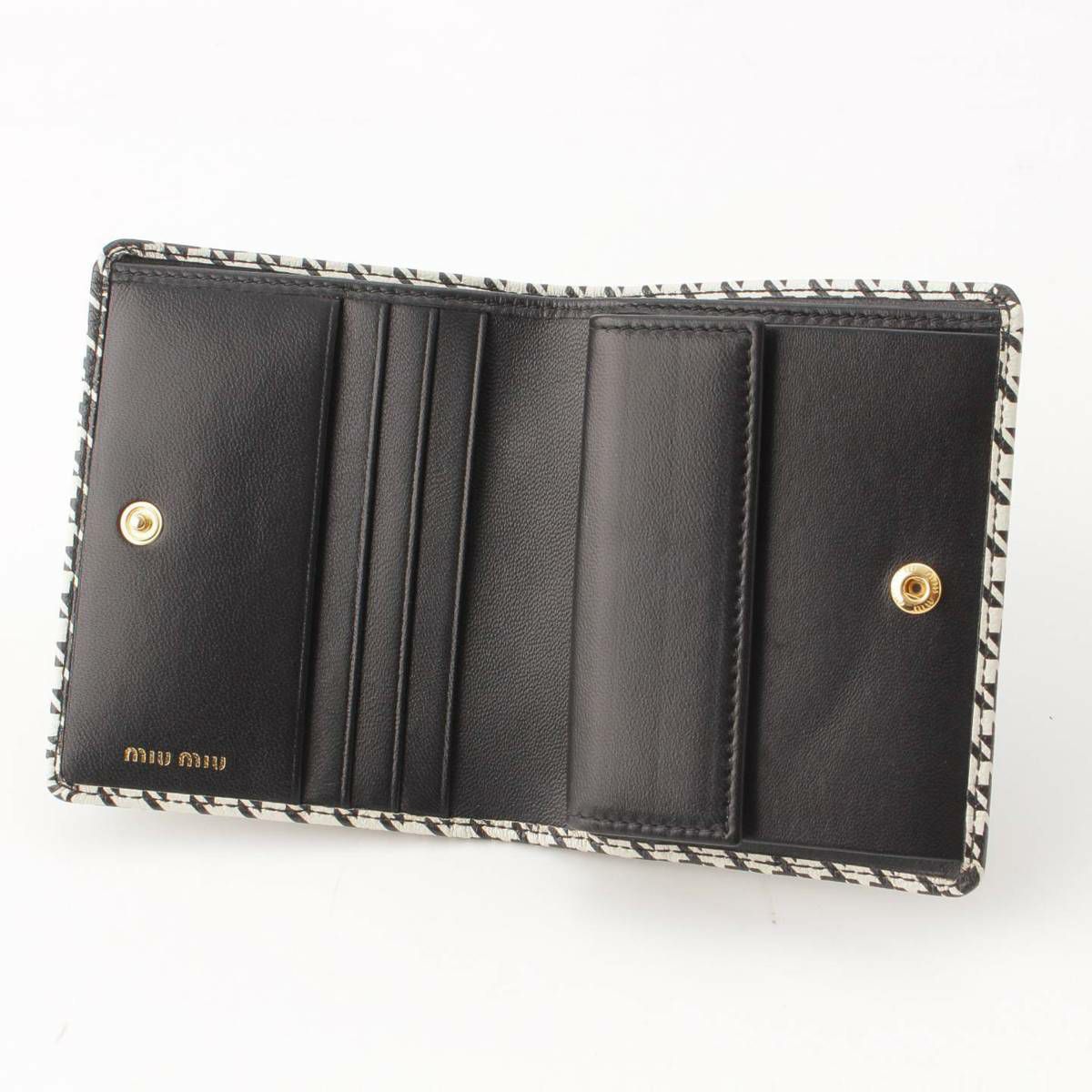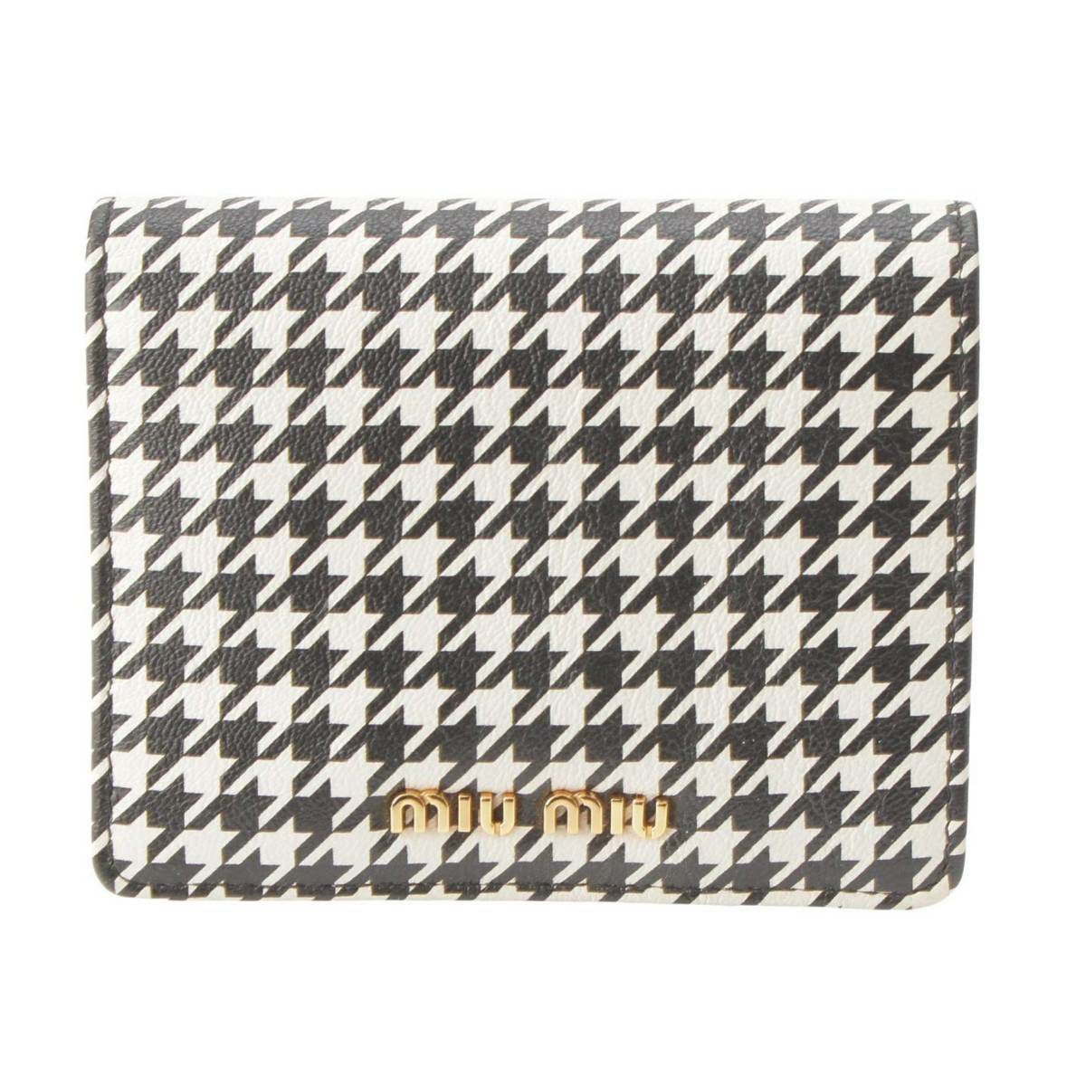 ミュウミュウ Miu Miu PIED DE POULE 千鳥格子 コンパクトウォレット 財布 5MV204 ブラック×ホワイト