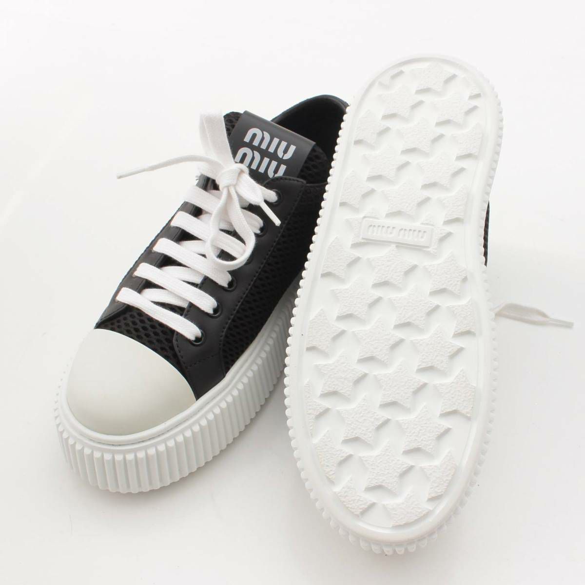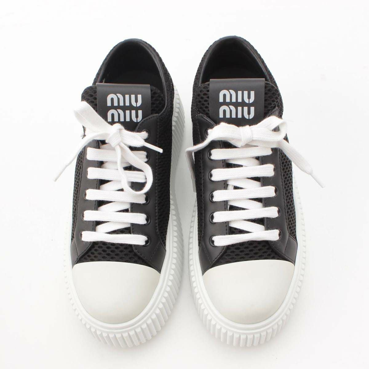 ミュウミュウ Miu Miu ロゴ メッシュ フラットフォーム スニーカー シューズ 5E726D ブラック 38