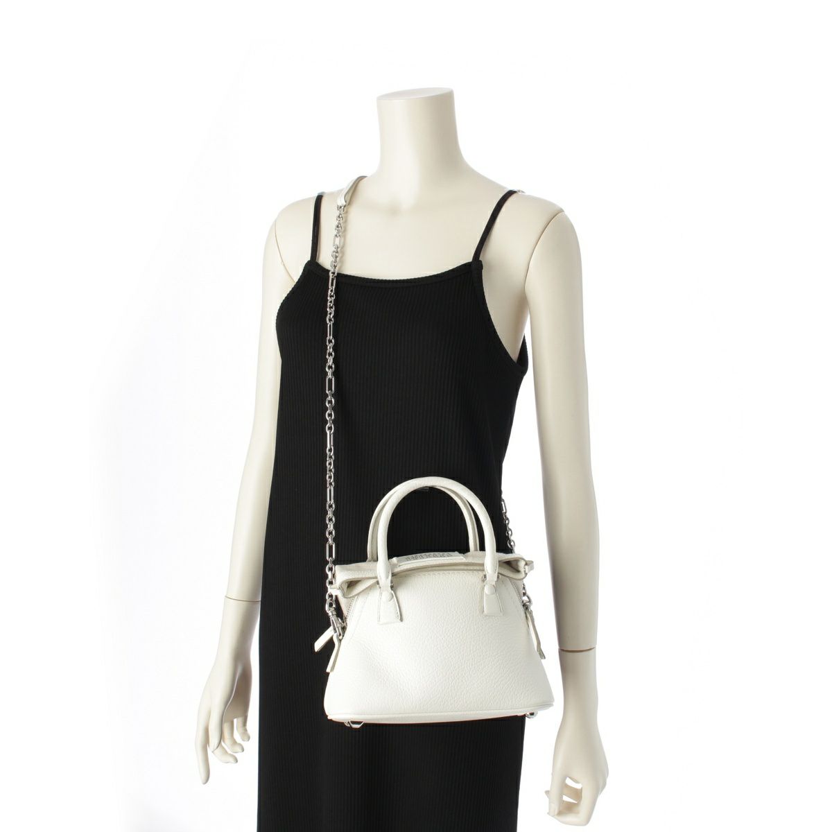 メゾンマルジェラ マイクロ 5AC レザー 2way チェーンショルダー ハンドバッグ S56WG0081 ホワイト