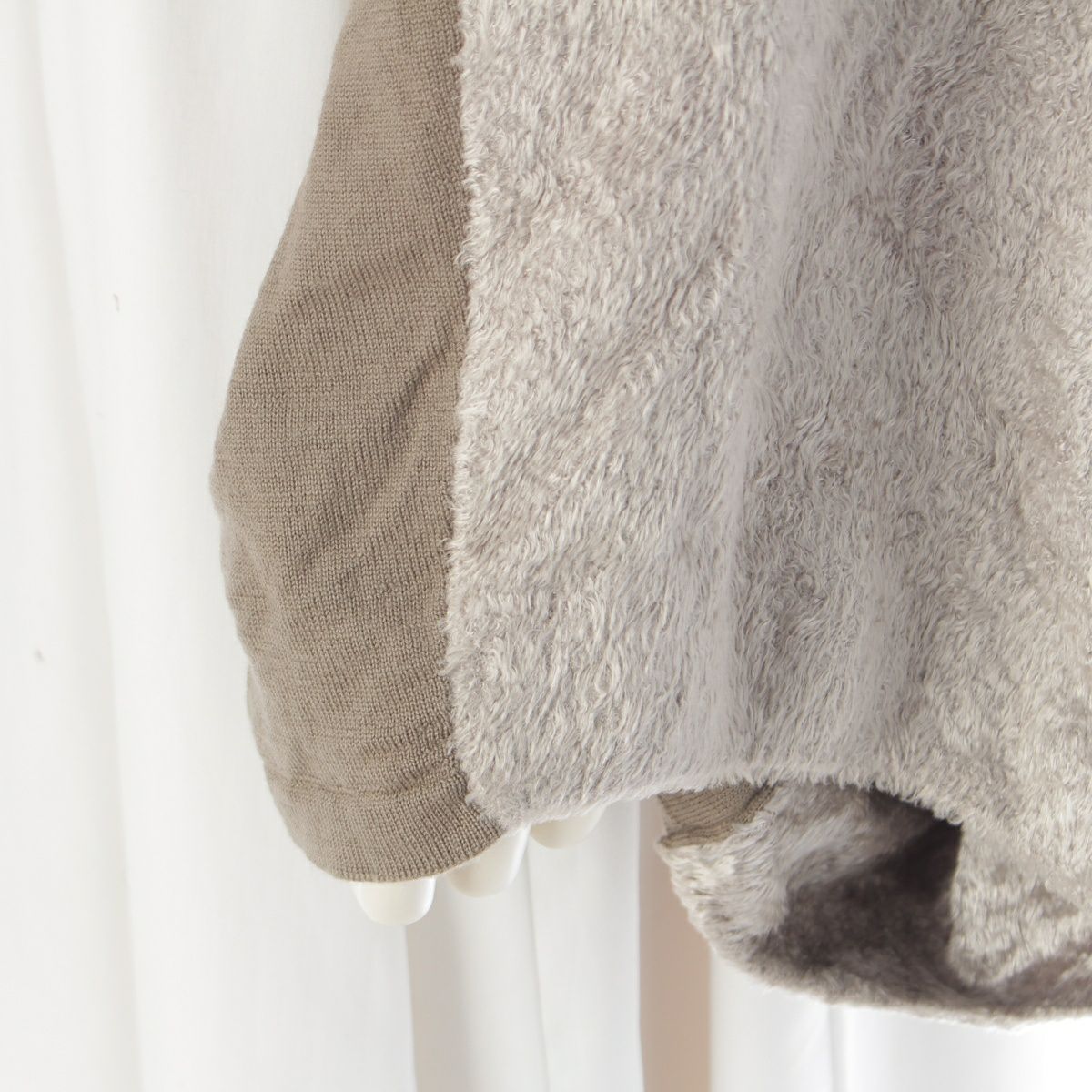 ダメージ箇所: 裾に型崩れ、前身ごろに毛羽立ち、柔軟剤のようなニオイ