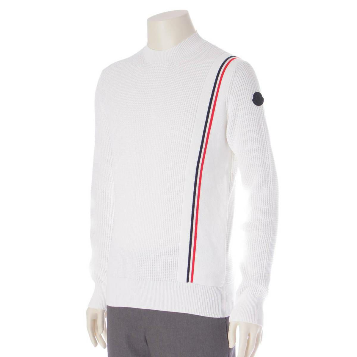 モンクレール Moncler メンズ 22年 GIROCOLLO ワッフル ロゴ ニット セーター ホワイト S
