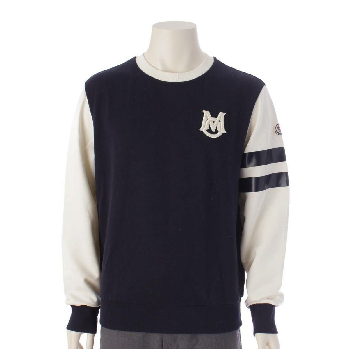 モンクレール Moncler 22年 メンズ ロゴワッペン コットン スウェット プルオーバー ネイビー×ホワイト S