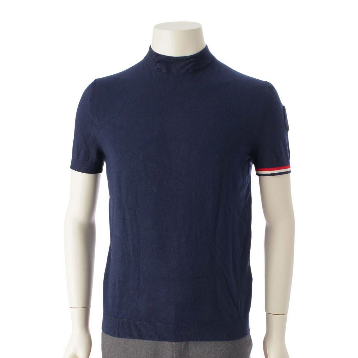 モンクレール Moncler 21年 メンズ ロゴワッペン モックネック 半袖 ニット セーター トップス ネイビー S