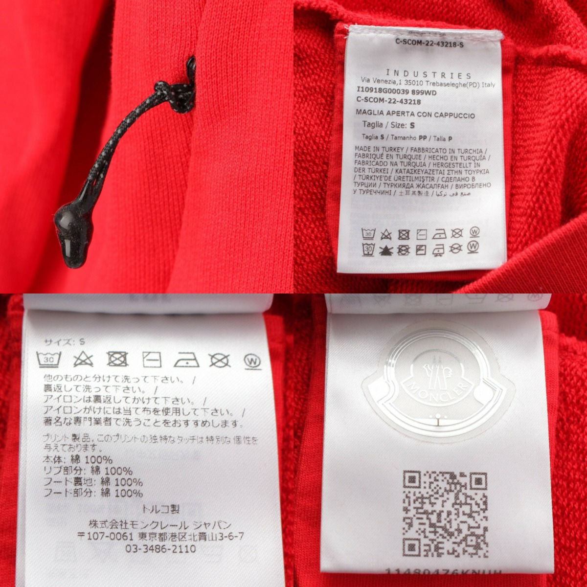 モンクレール Moncler 22年 フーディ ジップアップパーカー ブルゾン トップス I10918G00039 レッド S