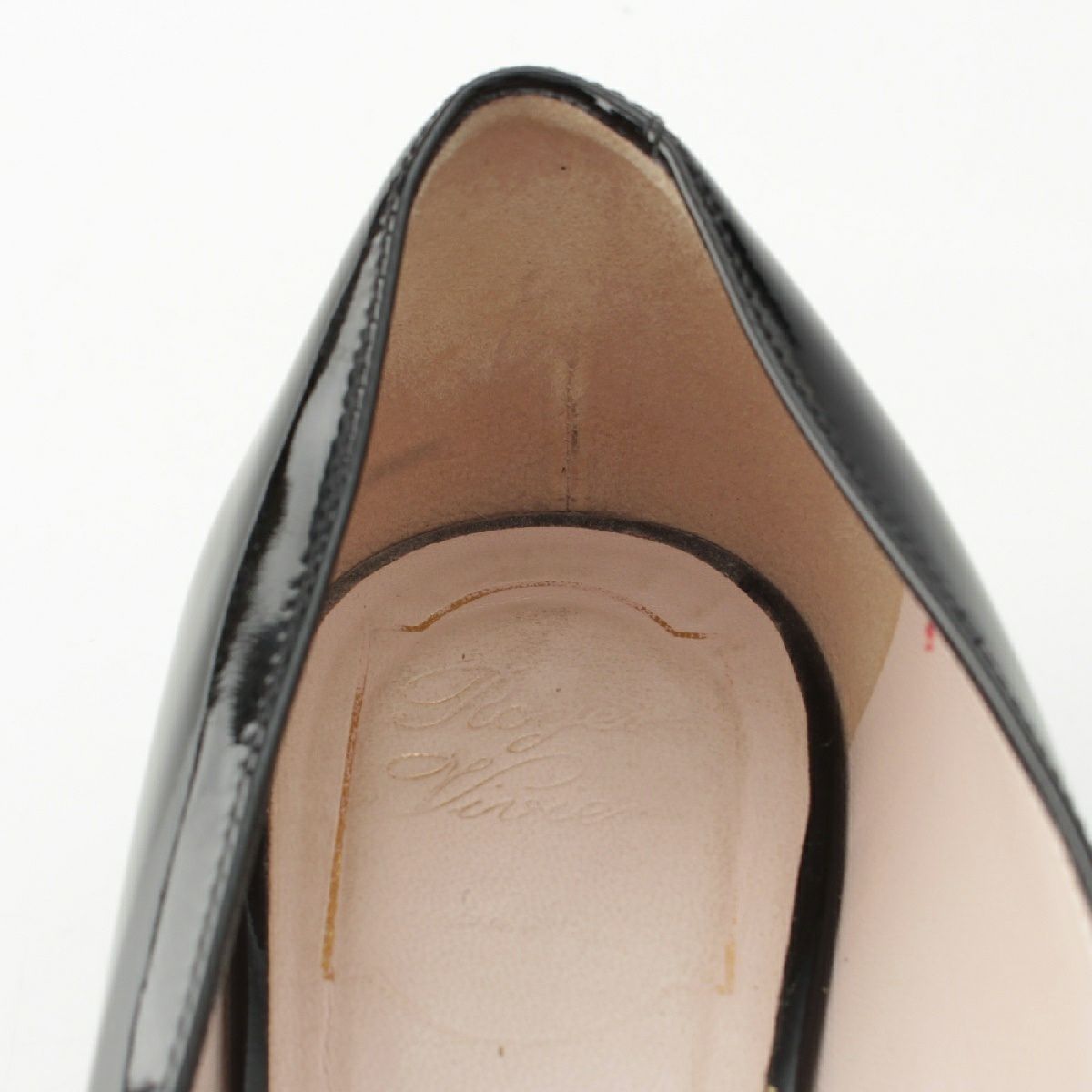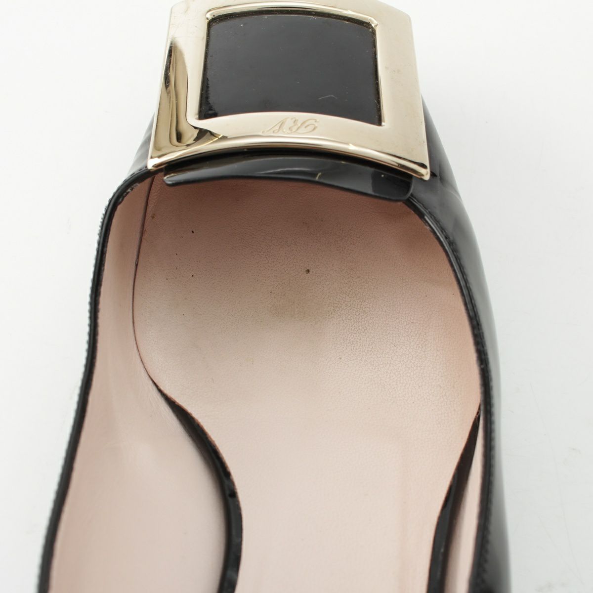 ロジェヴィヴィエ カーフパテントレザー トランペットヒール メタルバックル パンプス スクエアトゥ ブラック 37