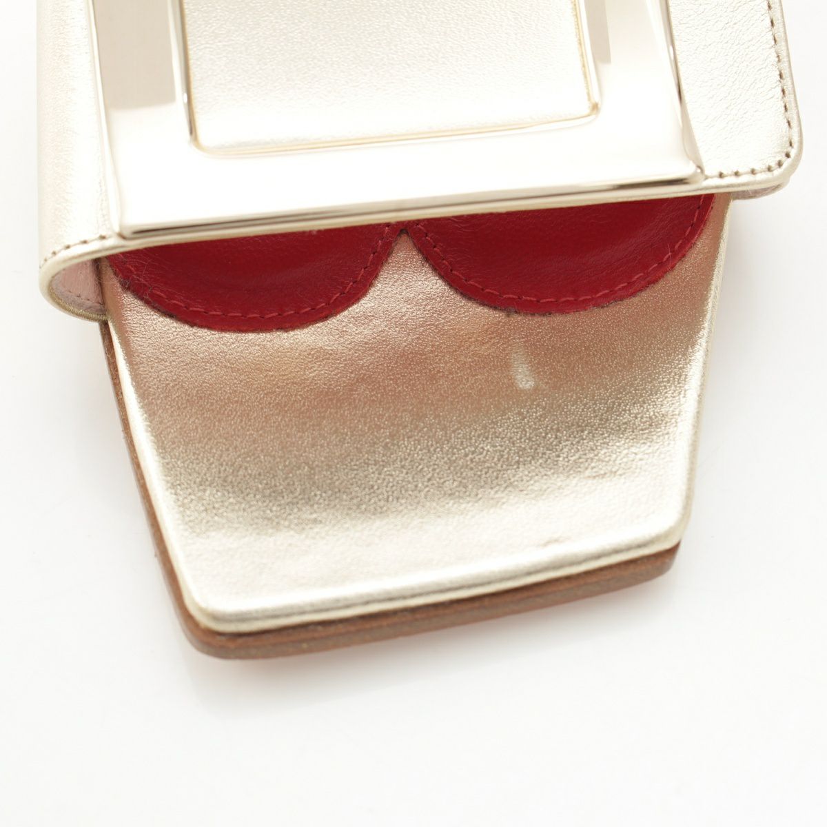 ロジェヴィヴィエ LOVE METAL レザー メタルバックル ミュール ヒール サンダル ゴールド 35