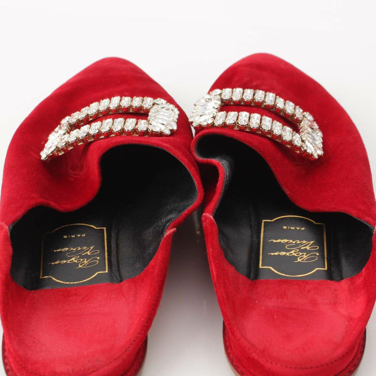 ロジェヴィヴィエ Roger Vivier バブーシュ スエード ストラスバックル フラット シューズ レッド 37 1/2