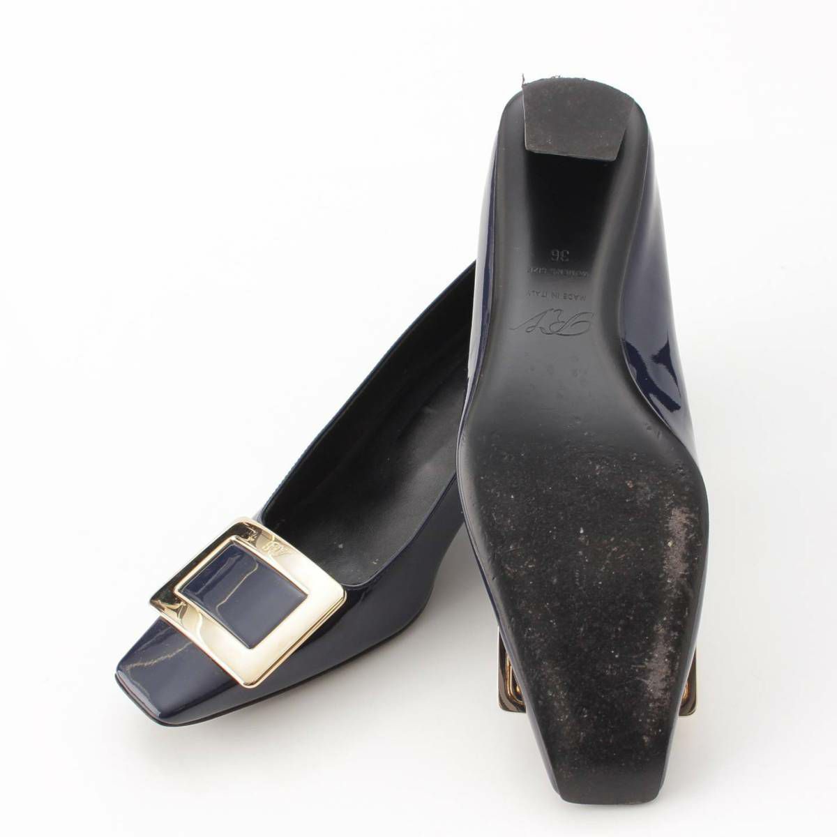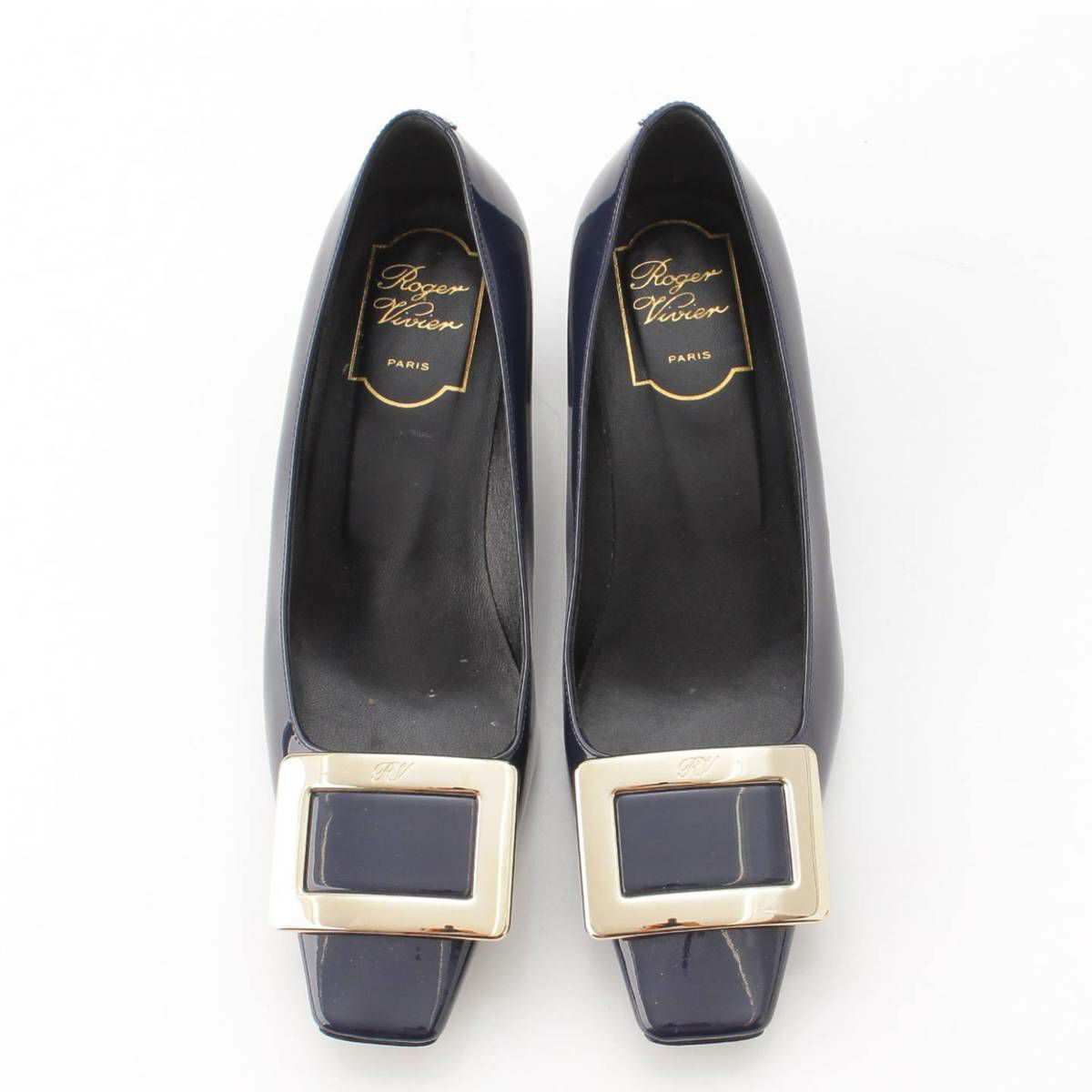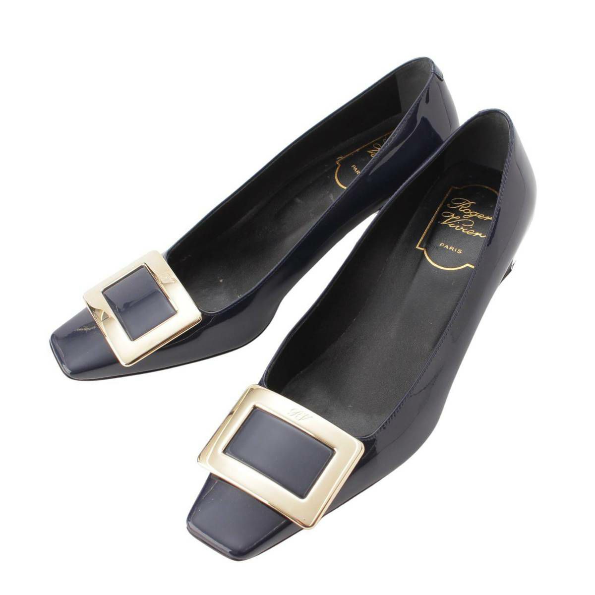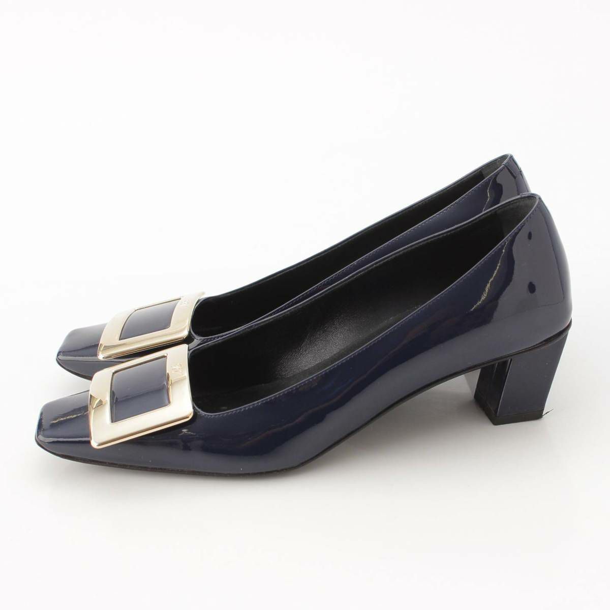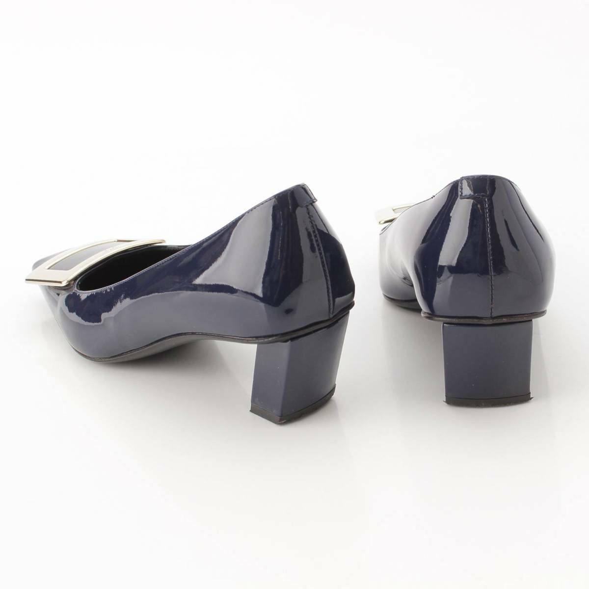 ロジェヴィヴィエ Roger Vivier バックル スクエアトゥ パテントレザー パンプス ネイビー 36