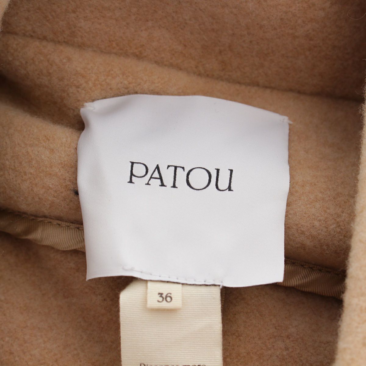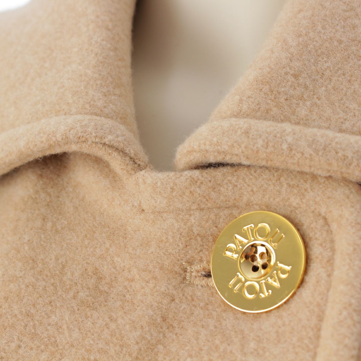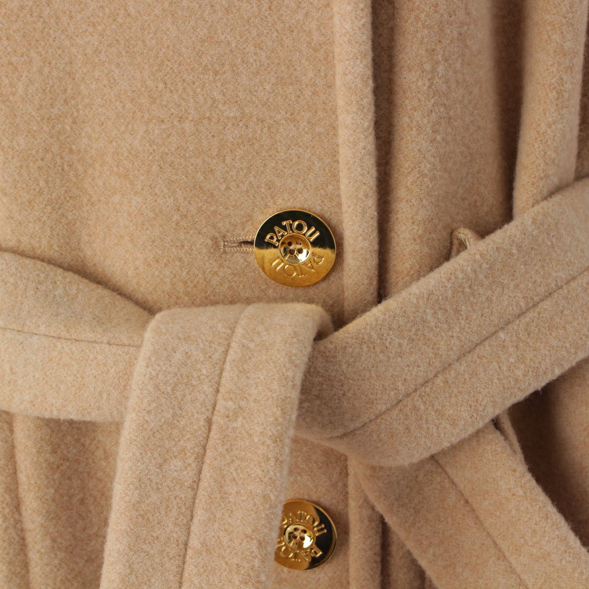 パトゥ ウール ロゴ刺繍 ダブルフェイス ゴールド金具 ベルト コート 22A-C0013-0121 ベージュ 36