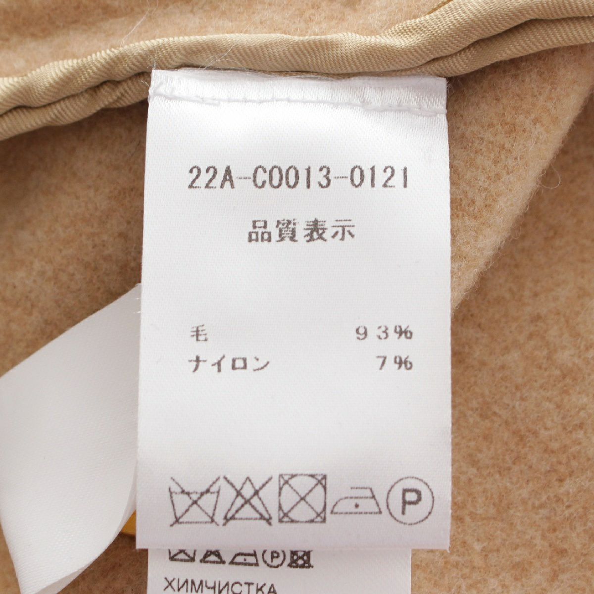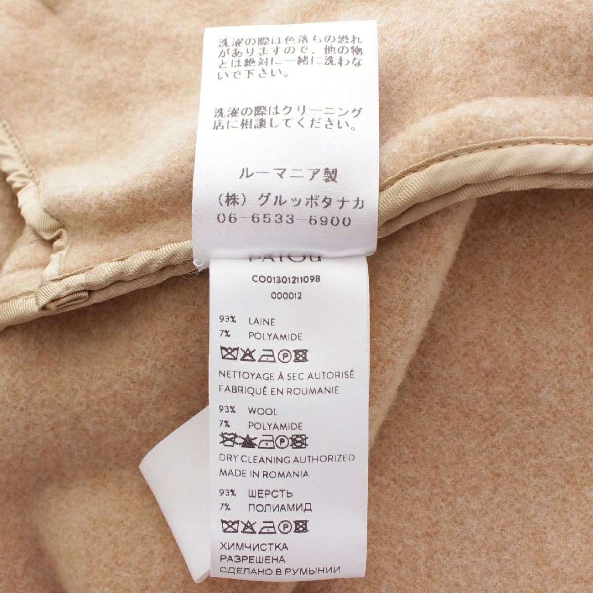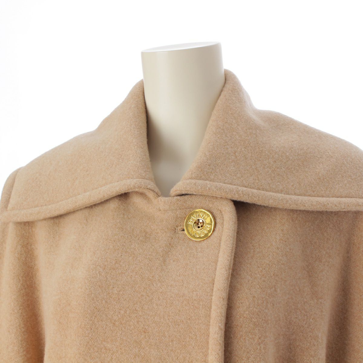 パトゥ ウール ロゴ刺繍 ダブルフェイス ゴールド金具 ベルト コート 22A-C0013-0121 ベージュ 36