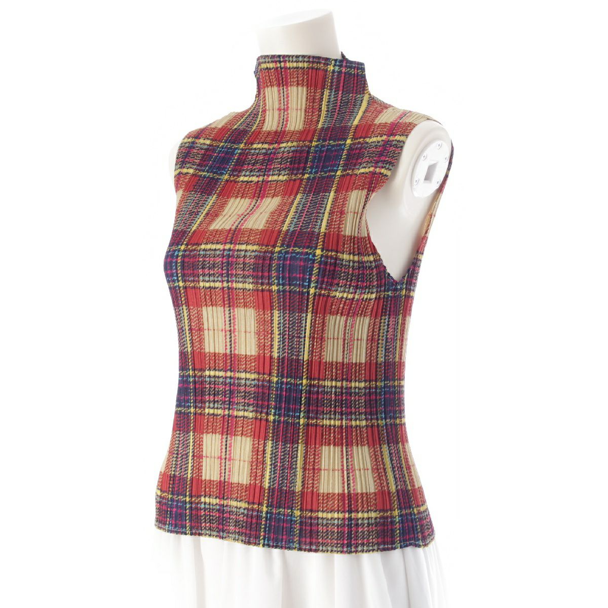 プリーツプリーズ イッセイミヤケ チェック柄 カットソー ハイネック ノースリーブ PP23-JK901 マルチカラー イエロー オレンジ 3