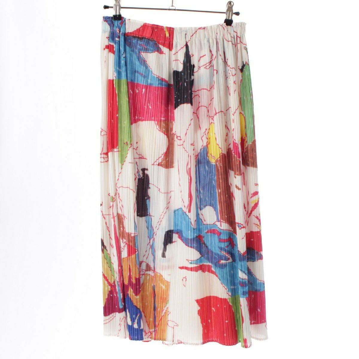 プリーツプリーズ イッセイミヤケ 水彩画 グラフィティ プリント スカート PP51-JG815 ホワイト×マルチカラー 3