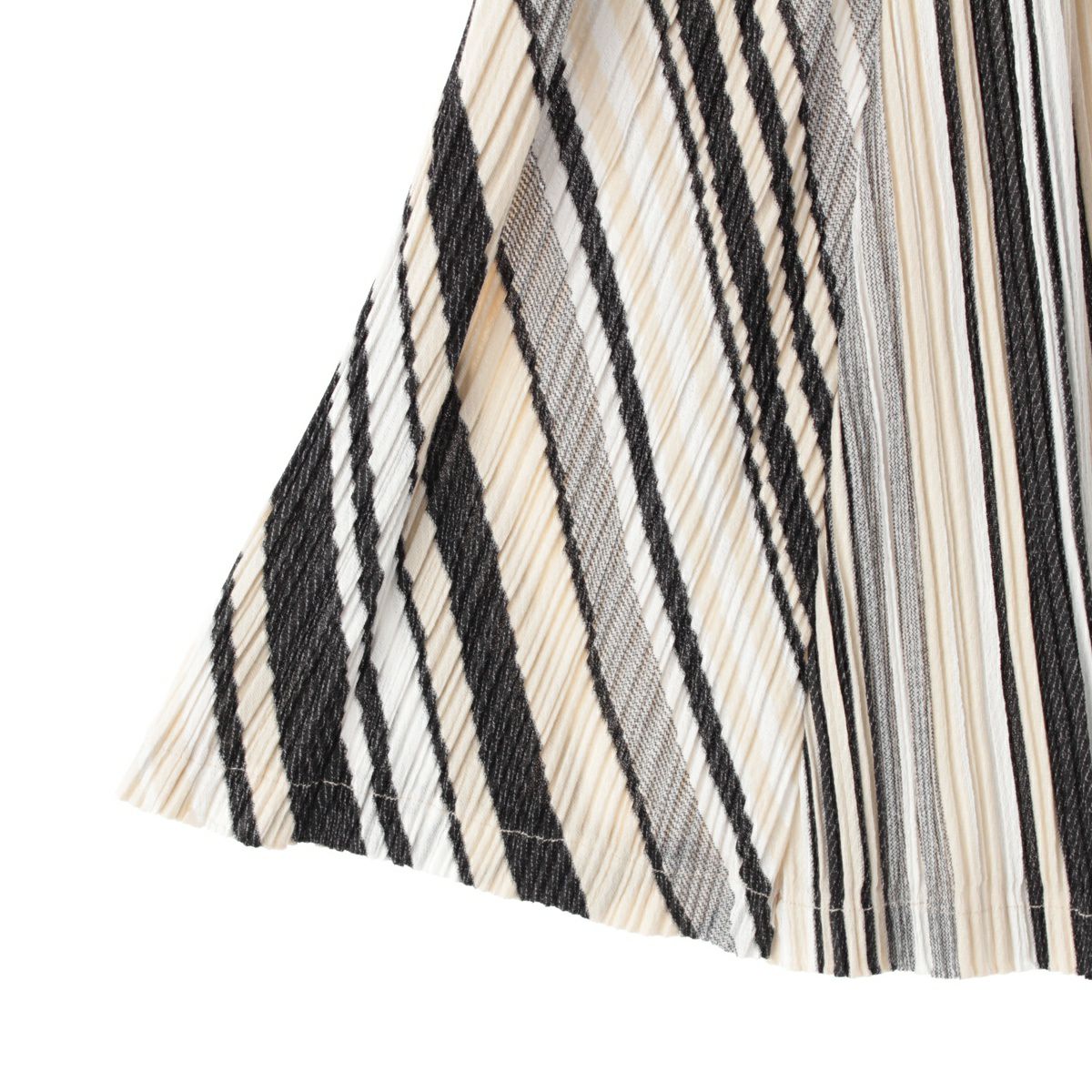 プリーツプリーズ イッセイミヤケ コットン混 ストライプ プリーツ キュロット スカート ボトムス PP61-JF644 ブラック×ホワイト×クリーム 5
