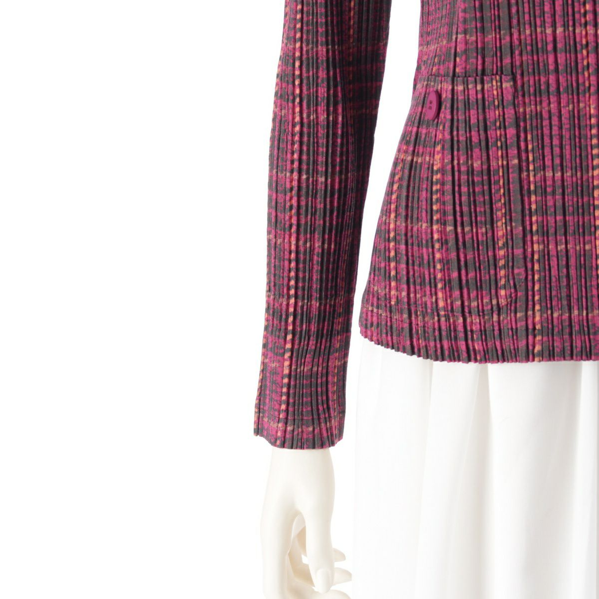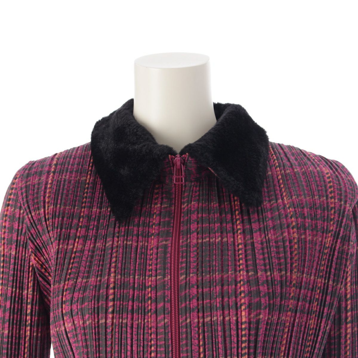 プリーツプリーズ イッセイミヤケ ライトアウター ファー切替 チェック ジップアップ アウター ジャケット PP83-JC454 ピンク 4