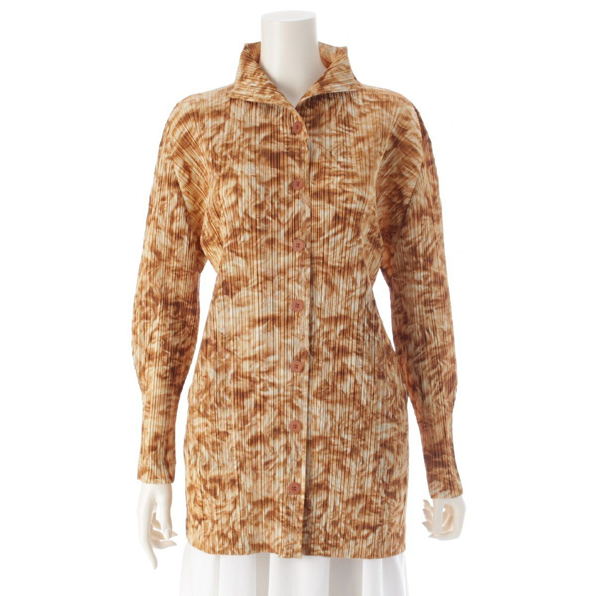 プリーツプリーズ イッセイミヤケ 総柄 長袖シャツ トップス ブラウス PP03-JD691 ブラウン 3