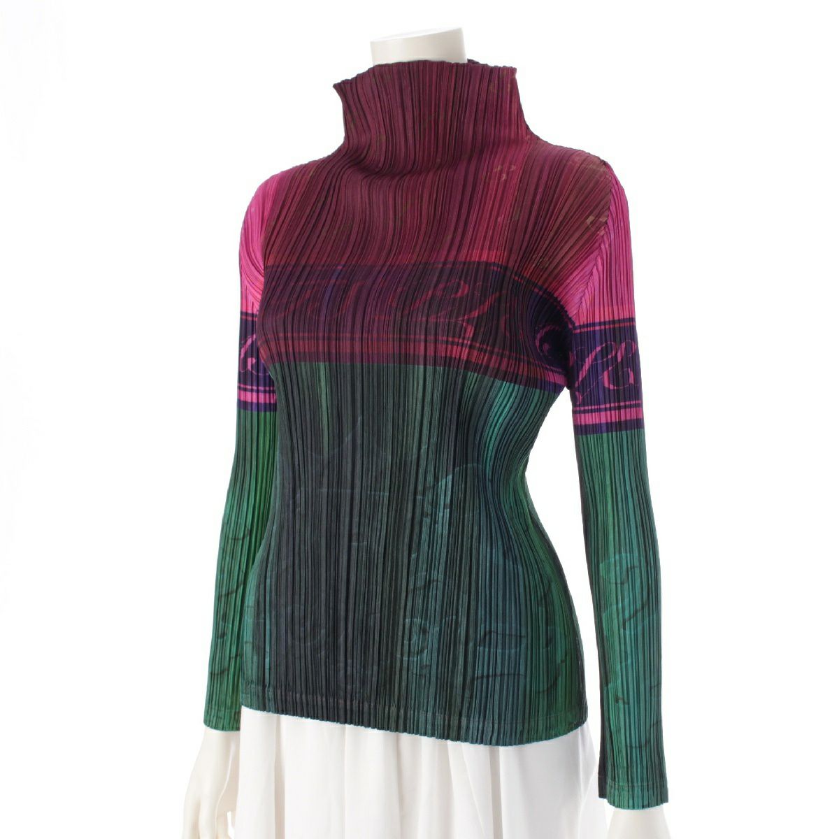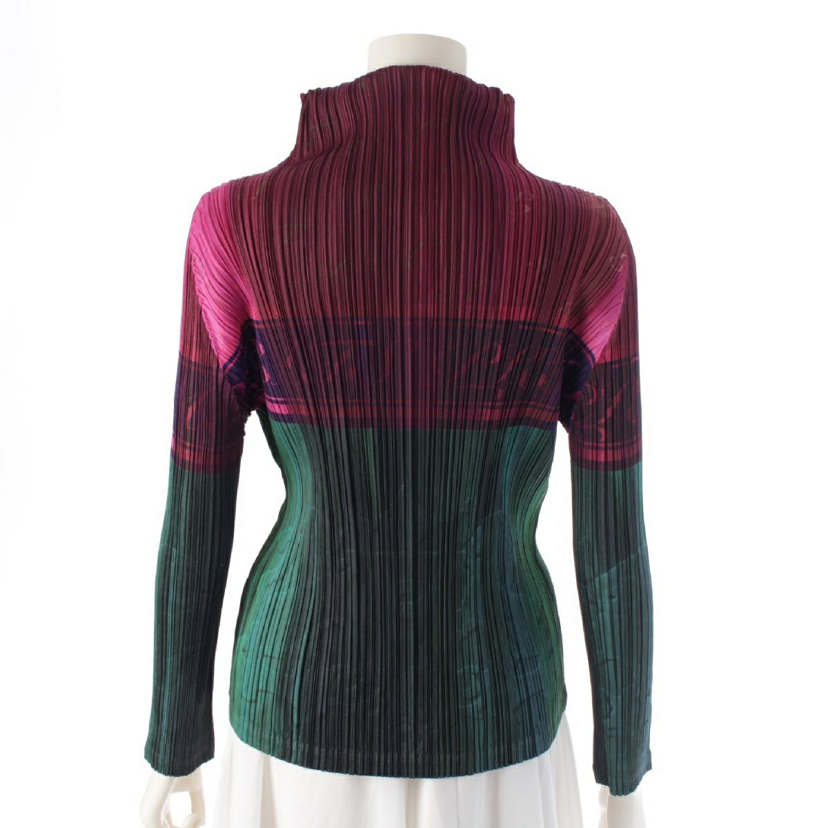 プリーツプリーズ イッセイミヤケ シャンパンボトル モックネック カットソー 長袖 トップス PP83-JK671 パープル グリーン マルチカラー 3