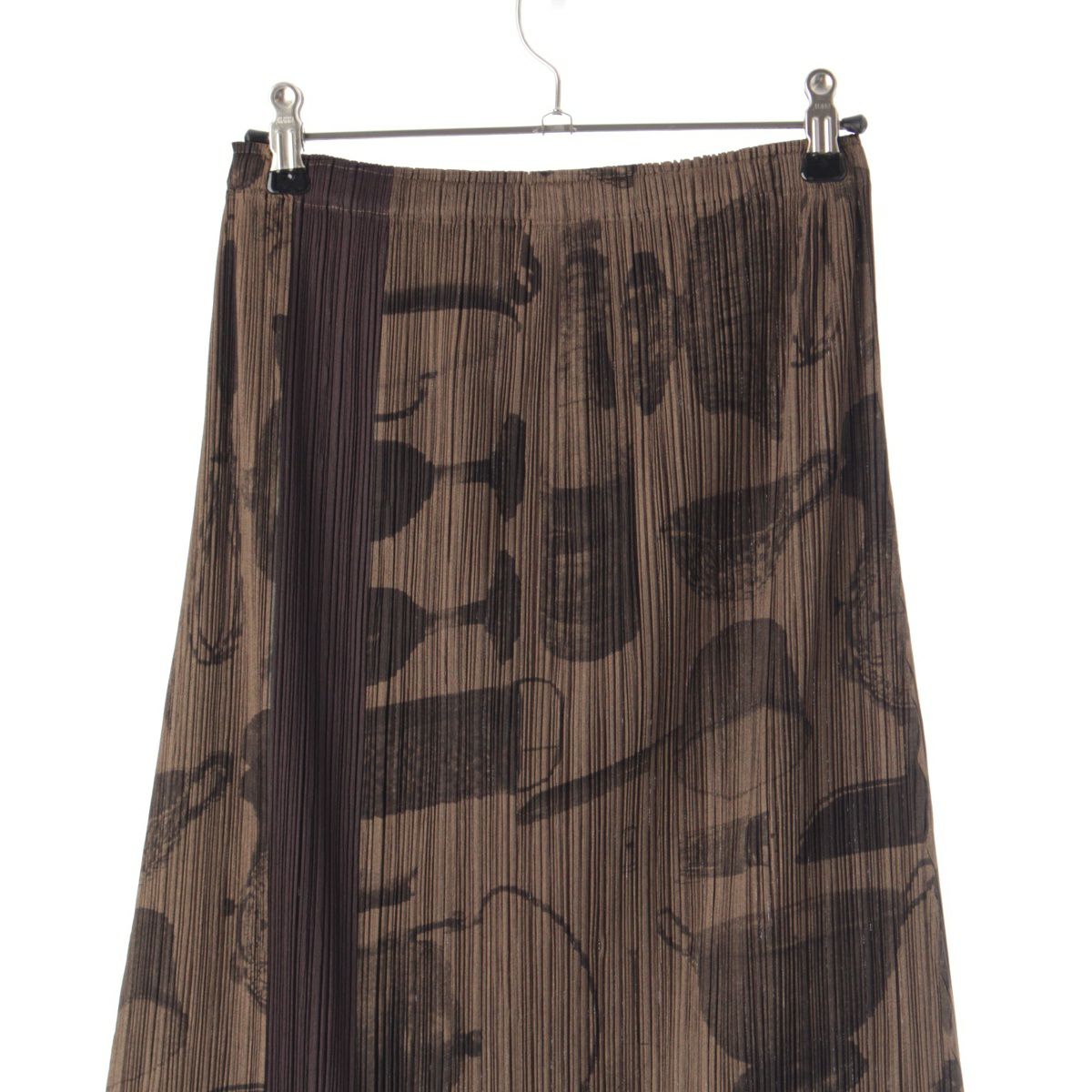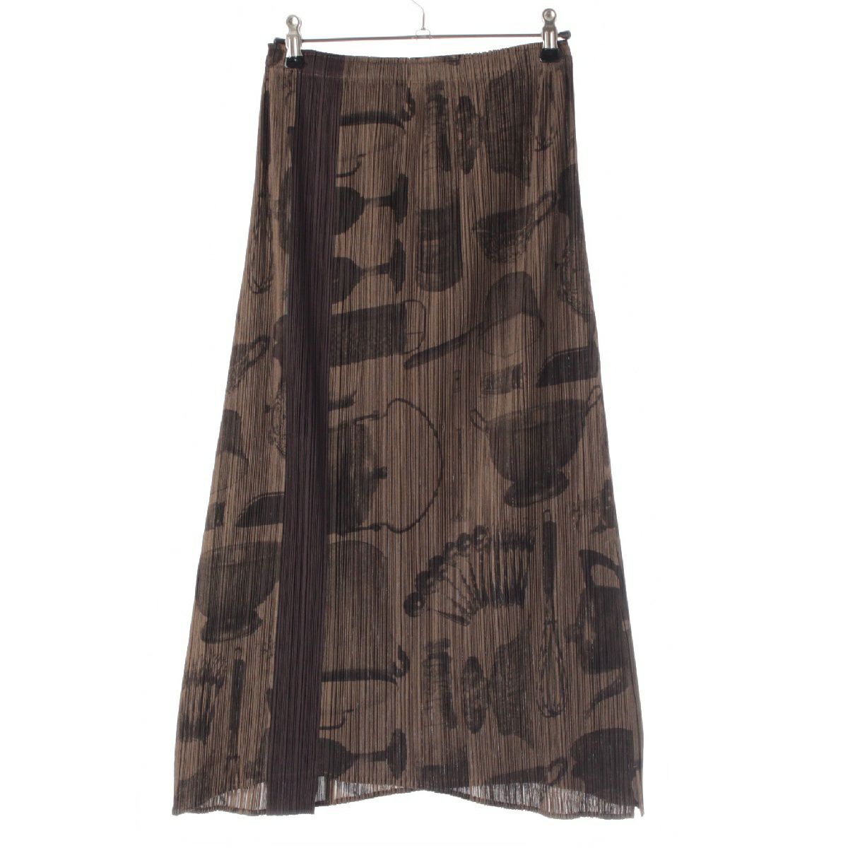 プリーツプリーズ イッセイミヤケ 調理器具 総柄 フレア ロングスカート PP53-JG585 ブラウン 2