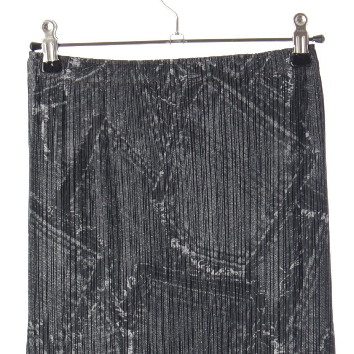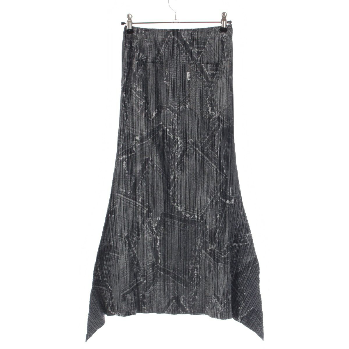プリーツプリーズ イッセイミヤケ デニム転写 パッチ ポケット柄 変形 ロングスカート PP41-JG875 グレー 1