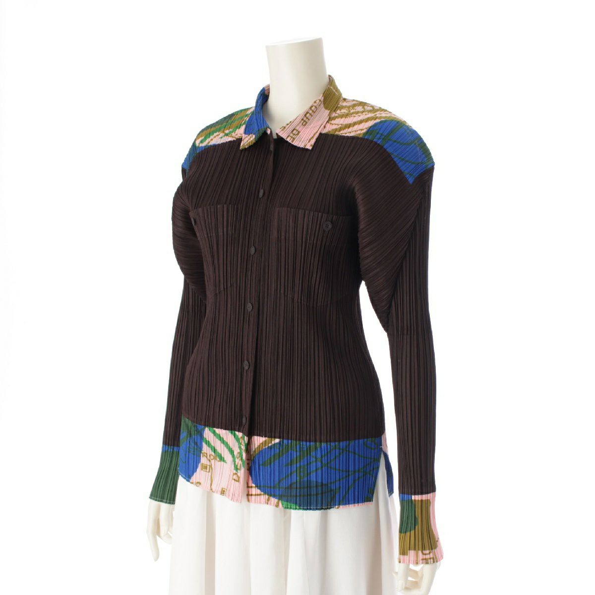 プリーツプリーズ イッセイミヤケ グラフィック プリーツ 長袖シャツ ジャケット 英字 PP22-JJ773 ブラウン ピンク ブルー 3
