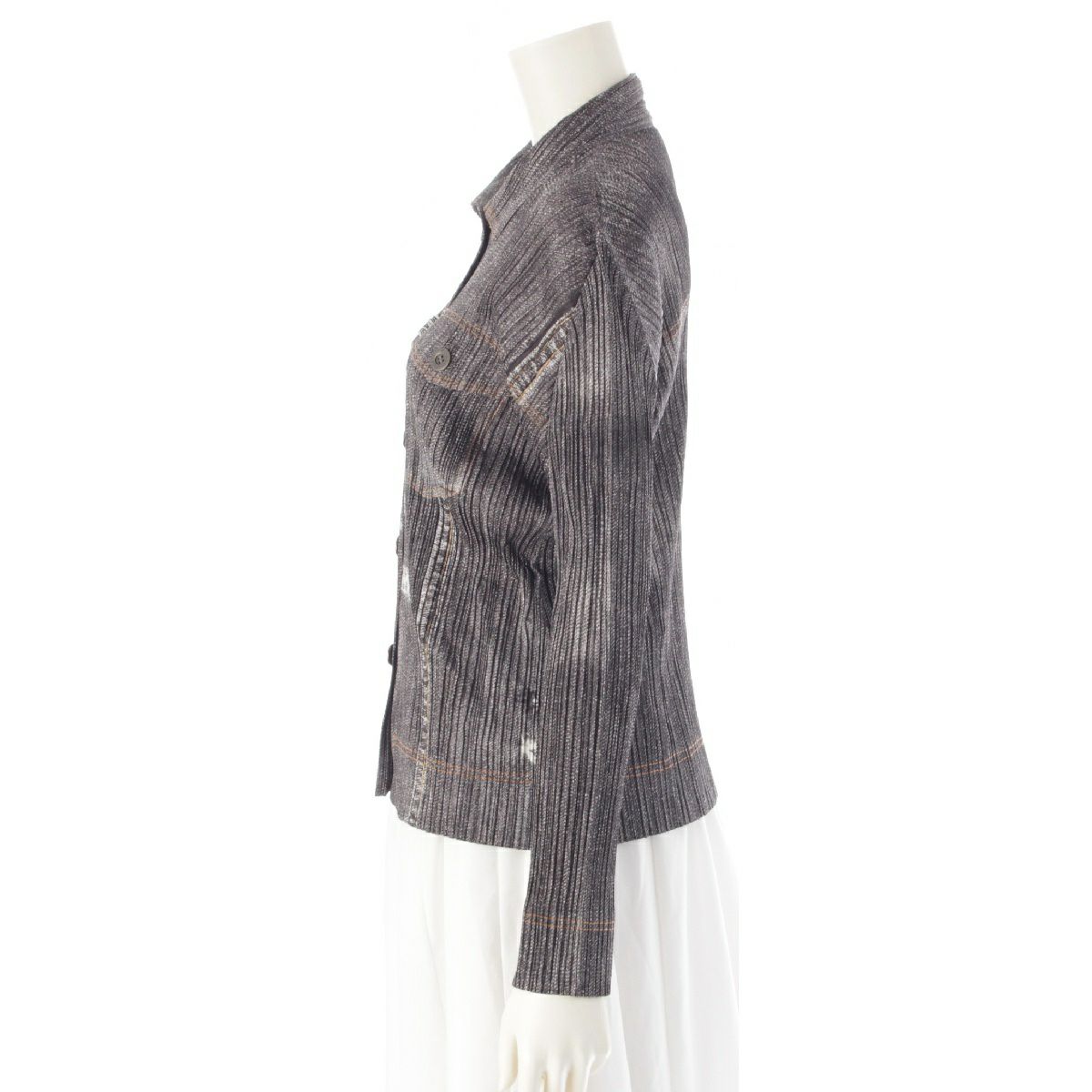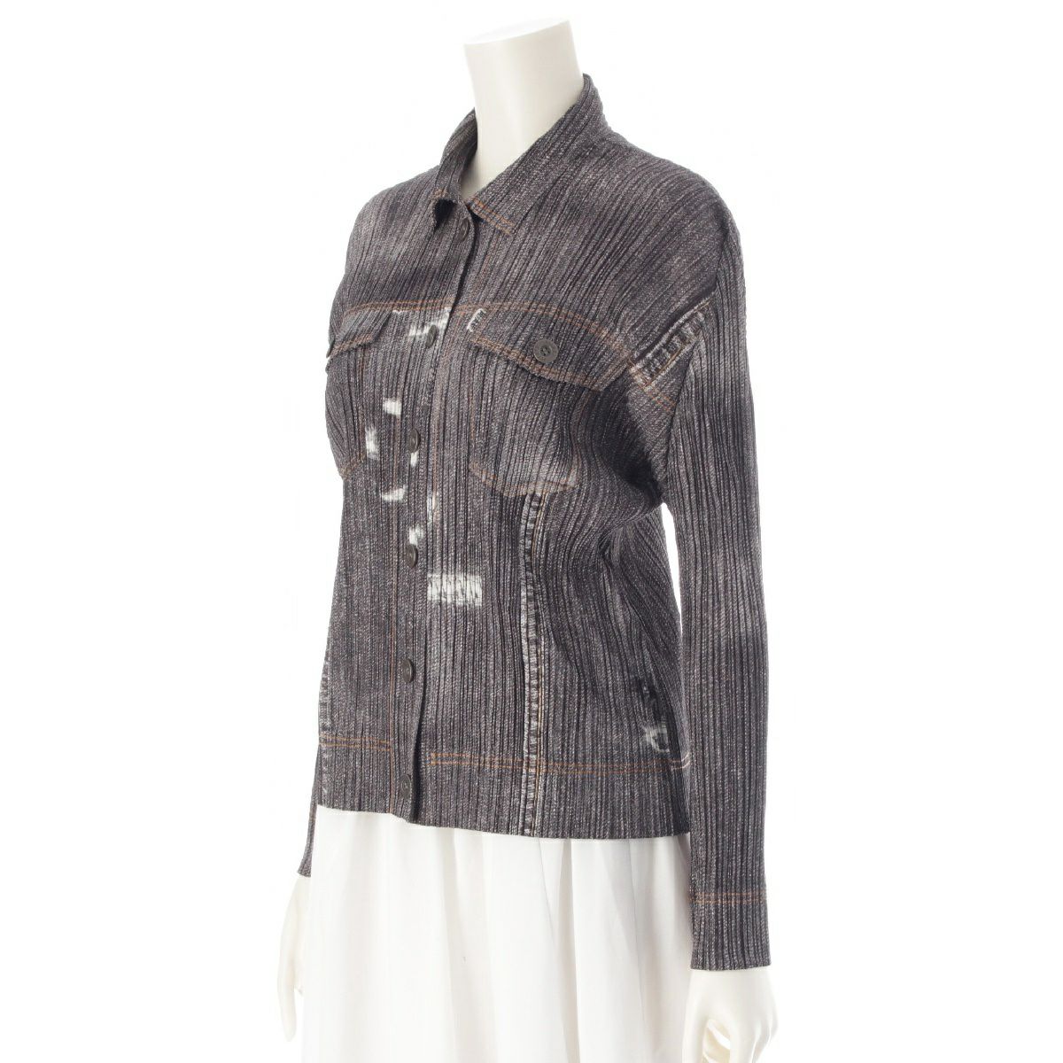 プリーツプリーズ イッセイミヤケ デニム転写 ダメージデザイン 長袖シャツ ジャケット ブラウス トップス PP71-JD536 グレー 3