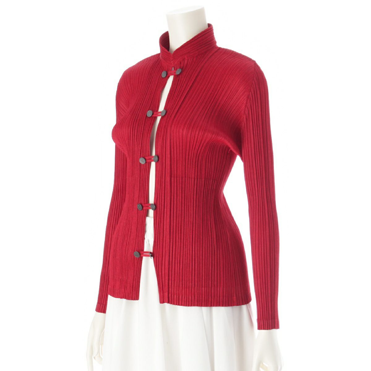 プリーツプリーズ イッセイミヤケ ドラゴン 龍 チャイナボタン カーディガン トップス シャツ ブラウス PP63-JD143 レッド 3