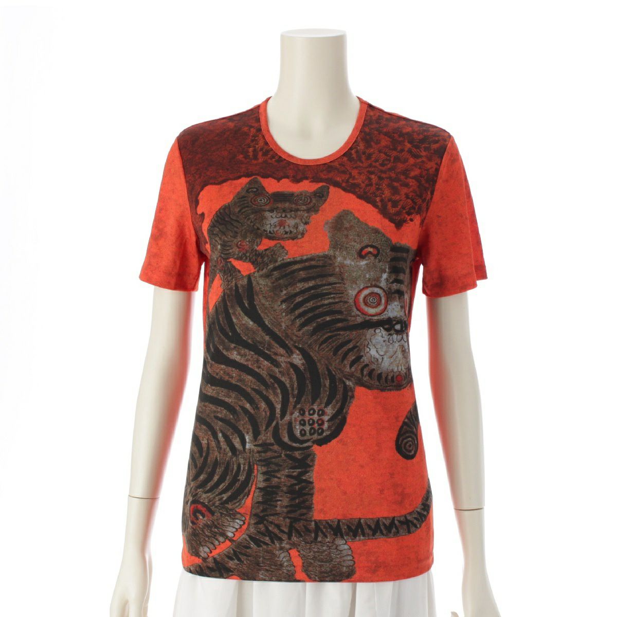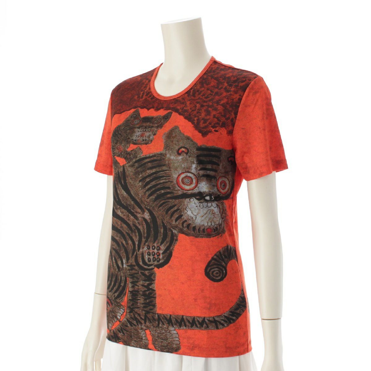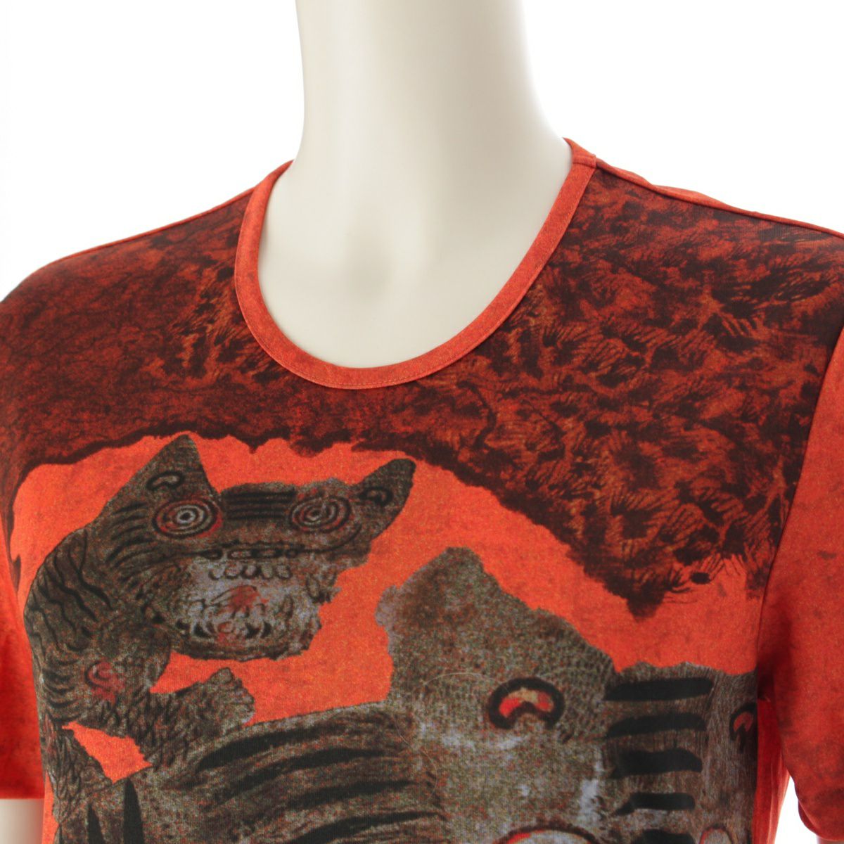 プリーツプリーズ イッセイミヤケ Tiger Cat タイガーキャット 民画 カットソー 半袖 Tシャツ オレンジ ブラウン 3