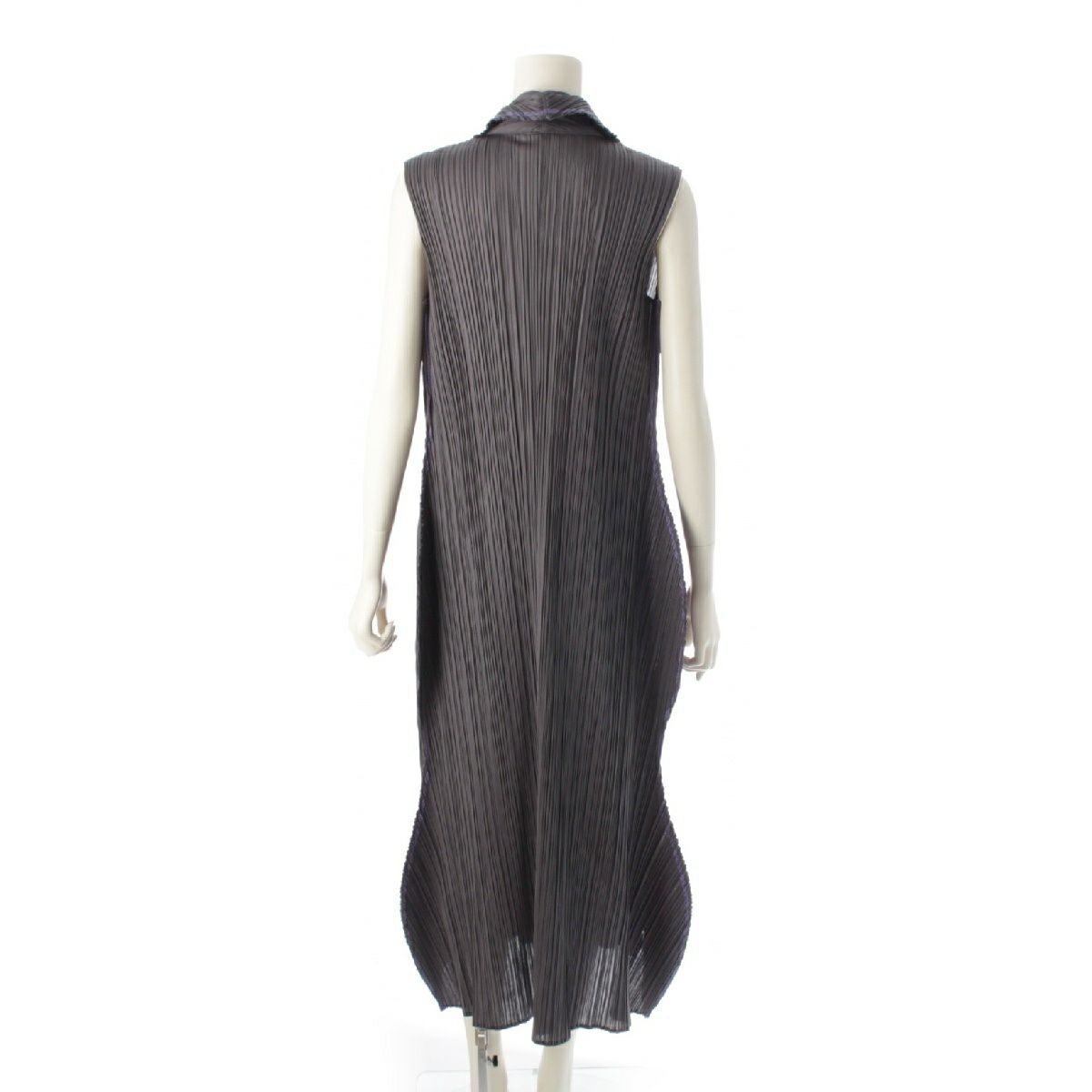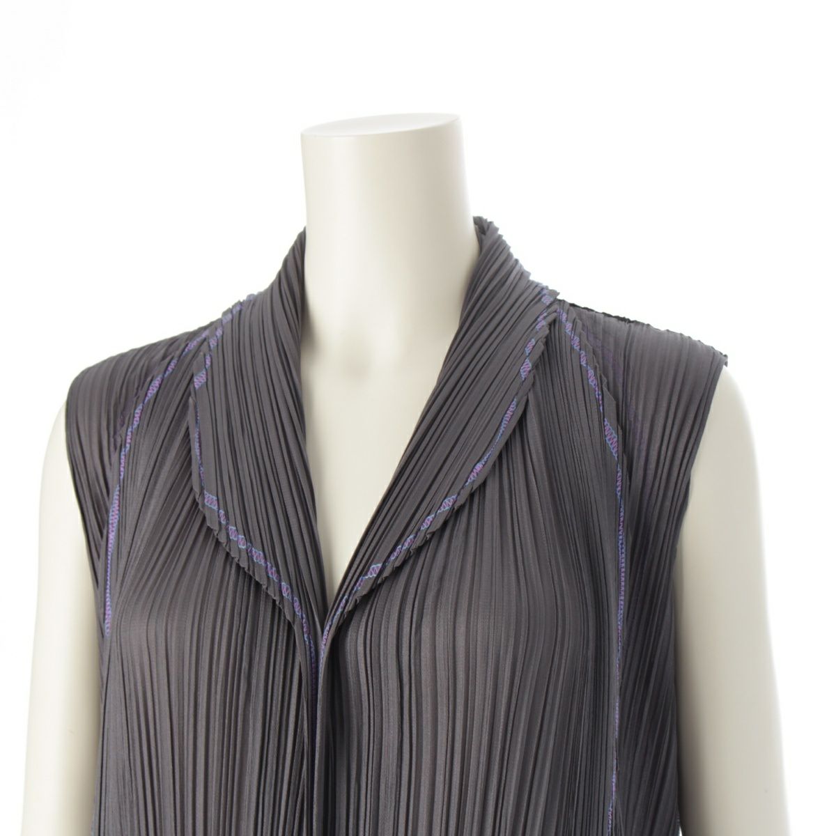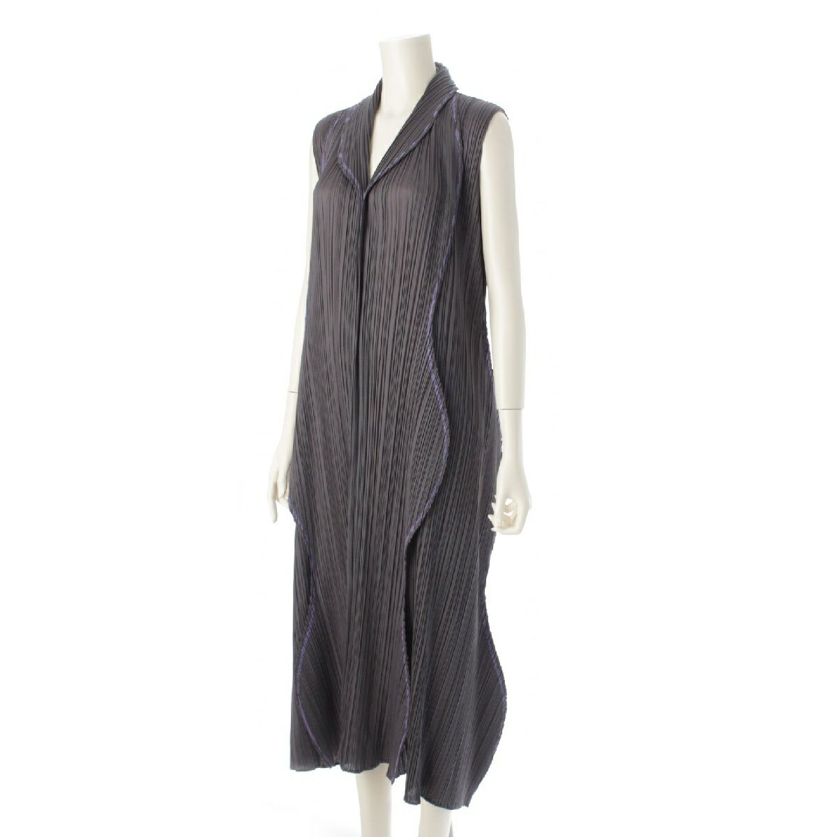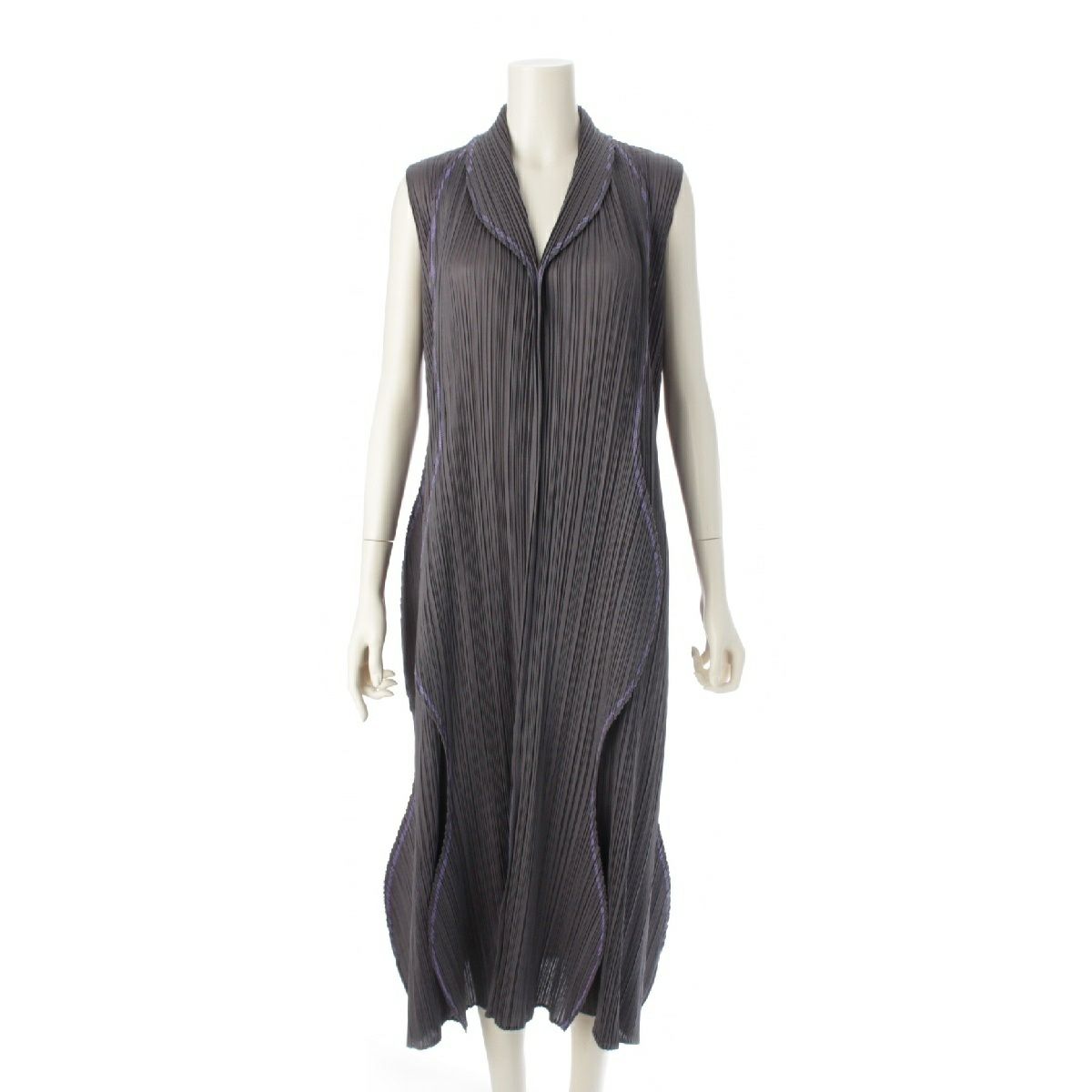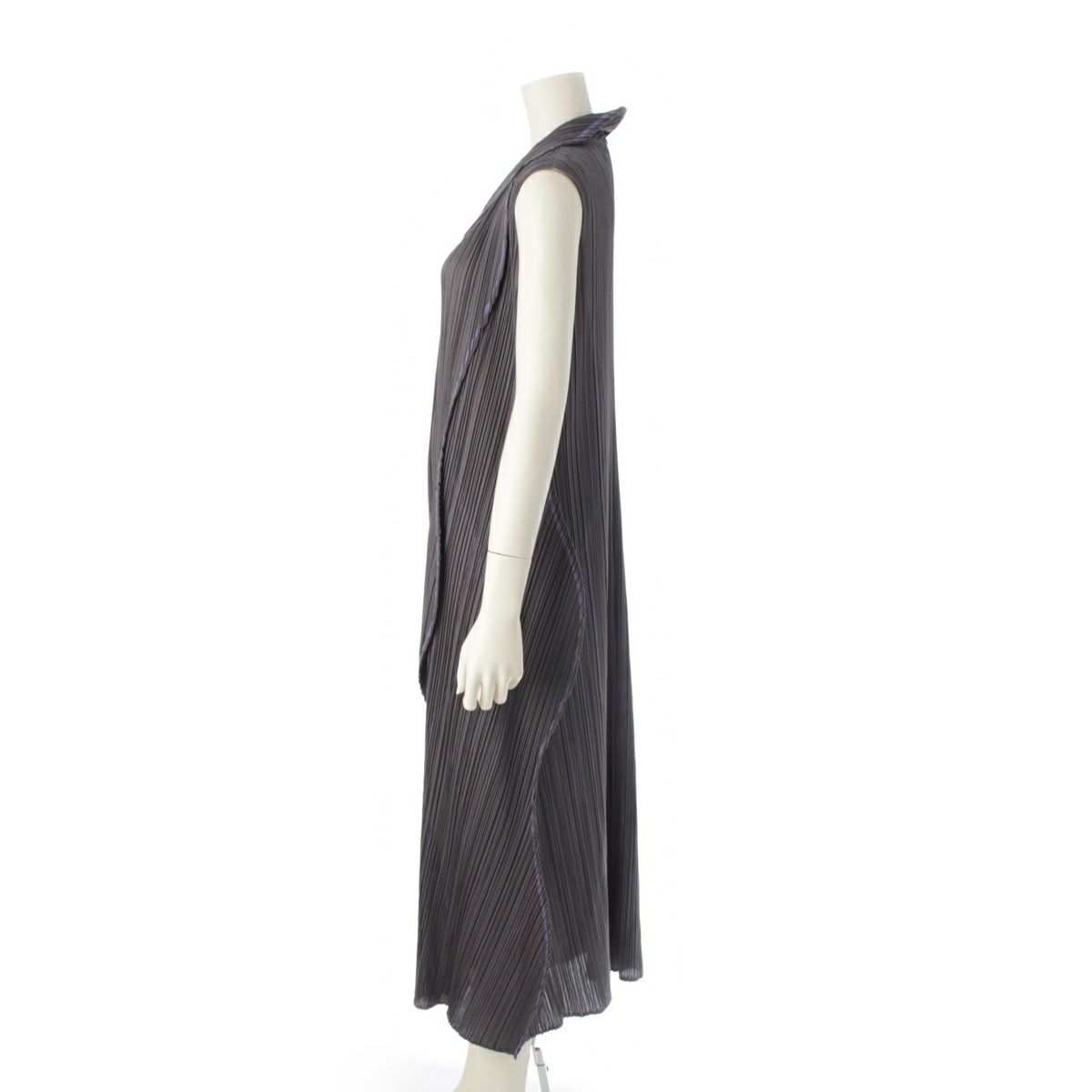 プリーツプリーズ イッセイミヤケ ラウンド サークル カラーステッチトリム ワンピース 変形 ノースリーブ ドレス PP81-JH707 グレー 4