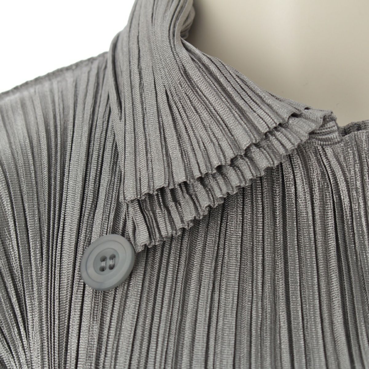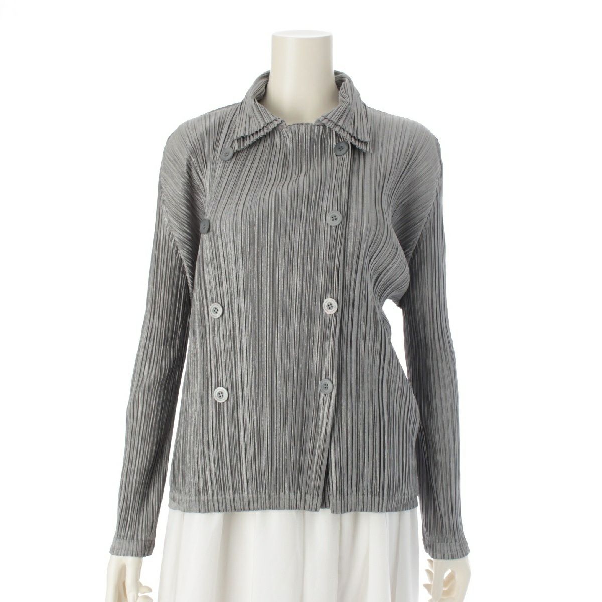 プリーツプリーズ イッセイミヤケ ポリエステル 長袖 ダブルブレスト テーラードジャケット アウター PP63-JD732 シルバー 4