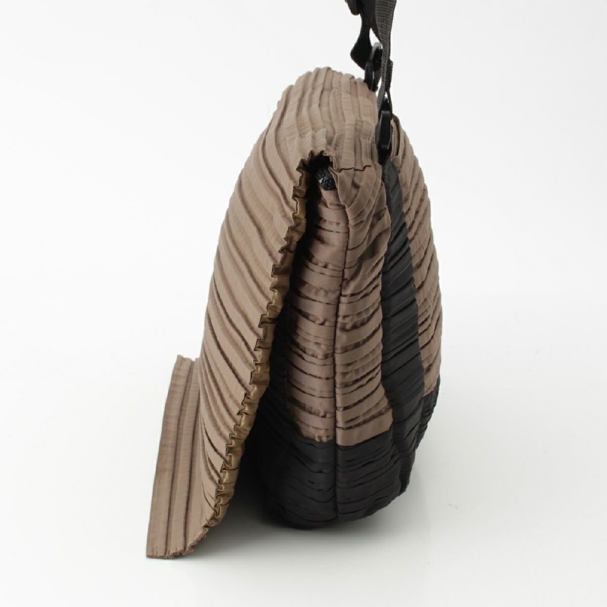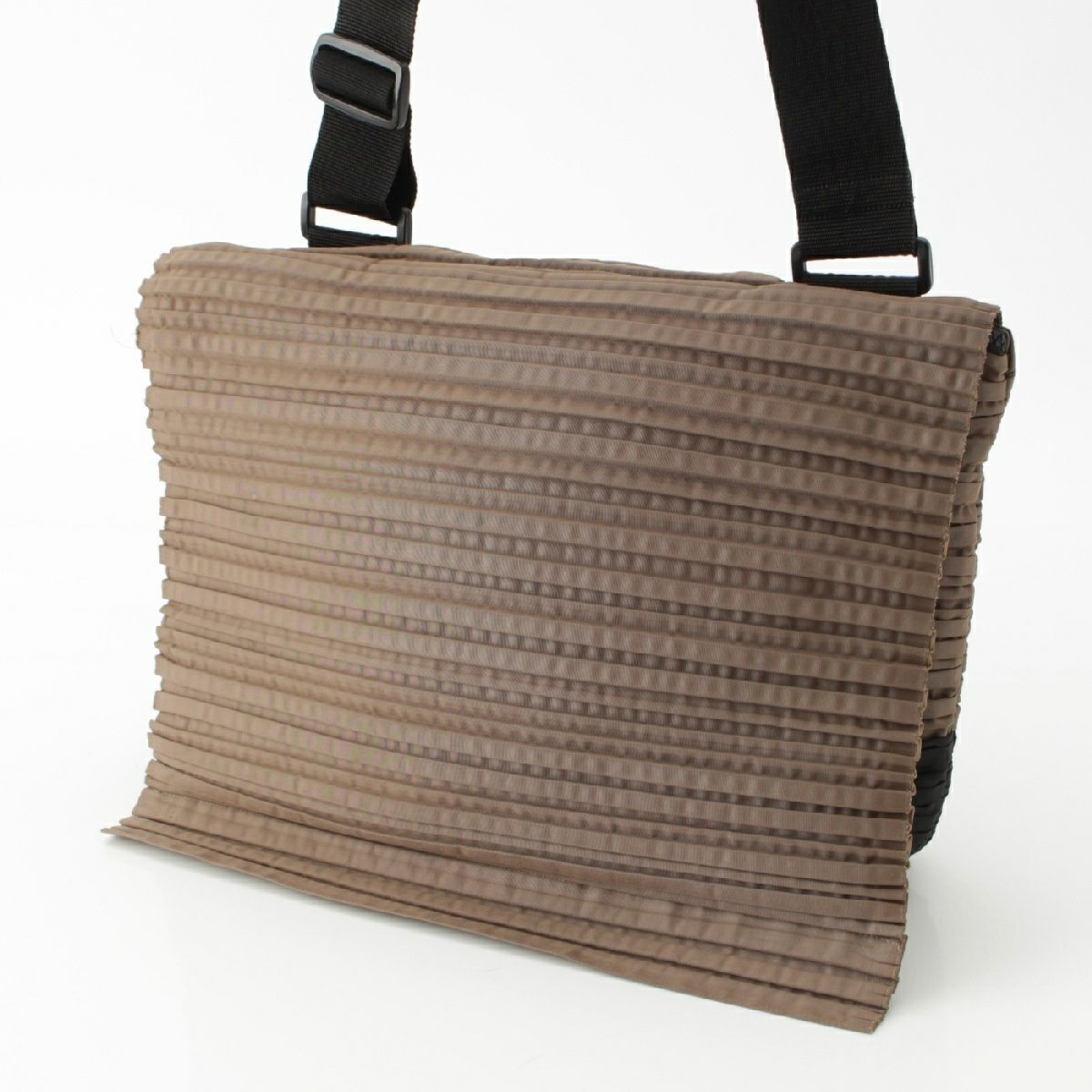 プリーツプリーズ イッセイミヤケ ボーダー メッセンジャーバッグ クロスボディ PP12-AG662 ブラウン