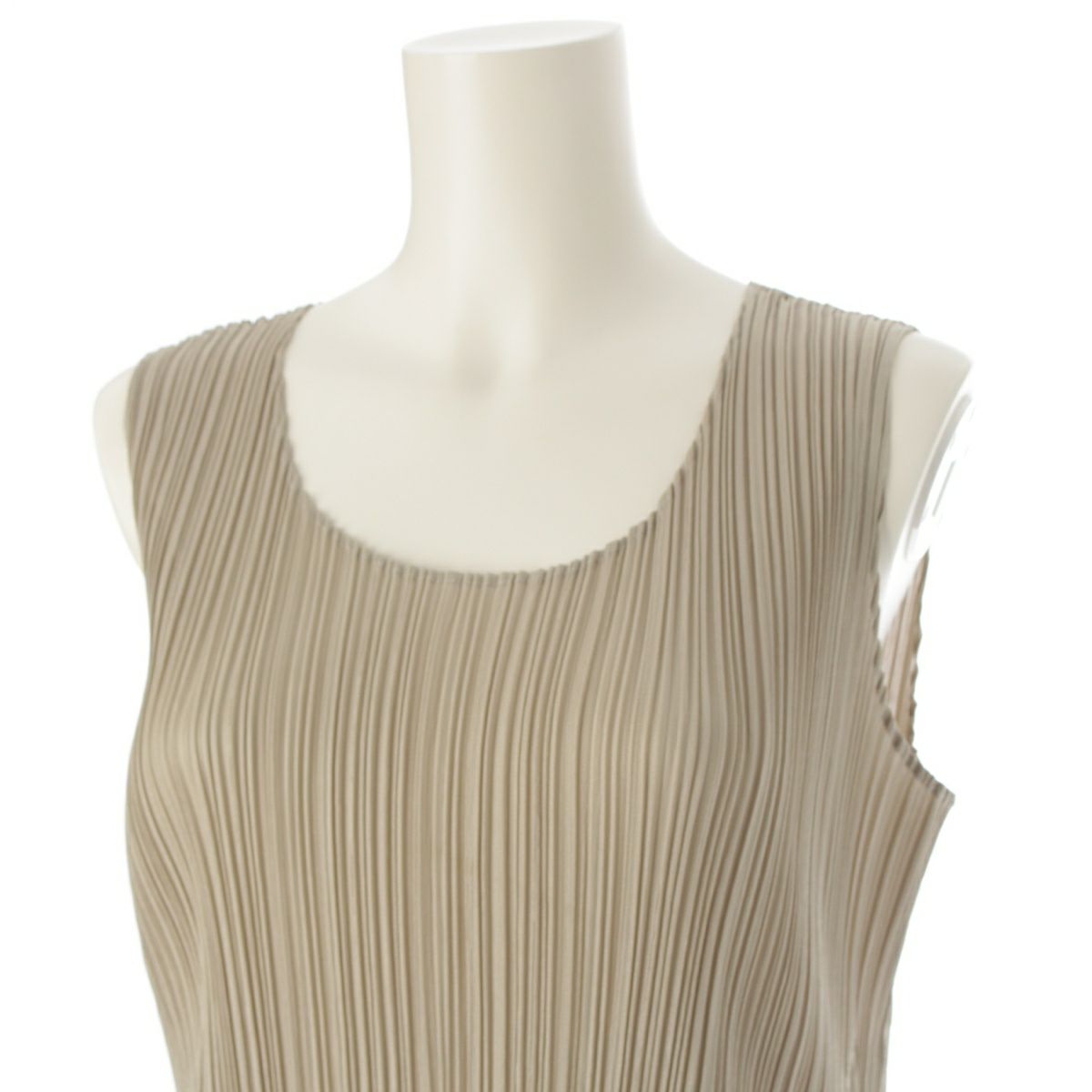 プリーツプリーズ イッセイミヤケ ポリエステル アシンメトリー ノースリーブ 変形 ランダムプリーツ ワンピース PP71-JK208 シャンパン ベージュ系 3