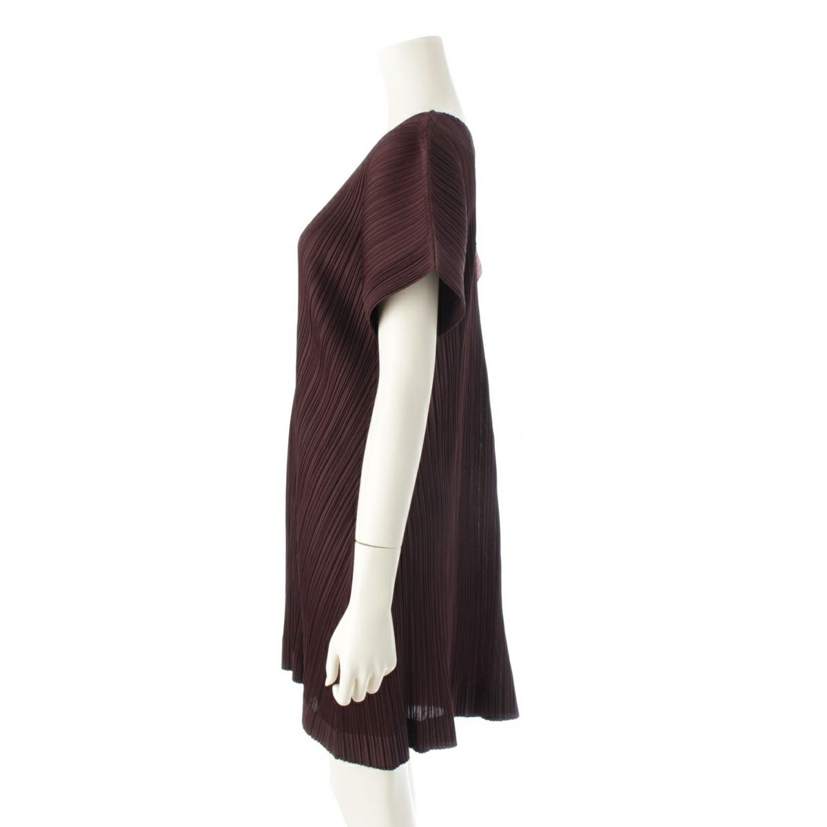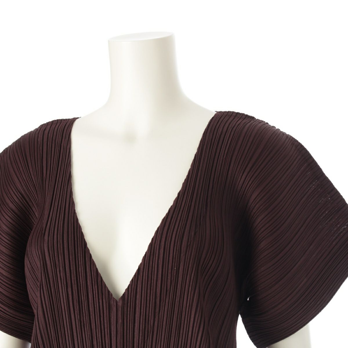プリーツプリーズ イッセイミヤケ Vネック プリーツ チュニック ワンピース 半袖 PP83-JK182 ダークブラウン 4