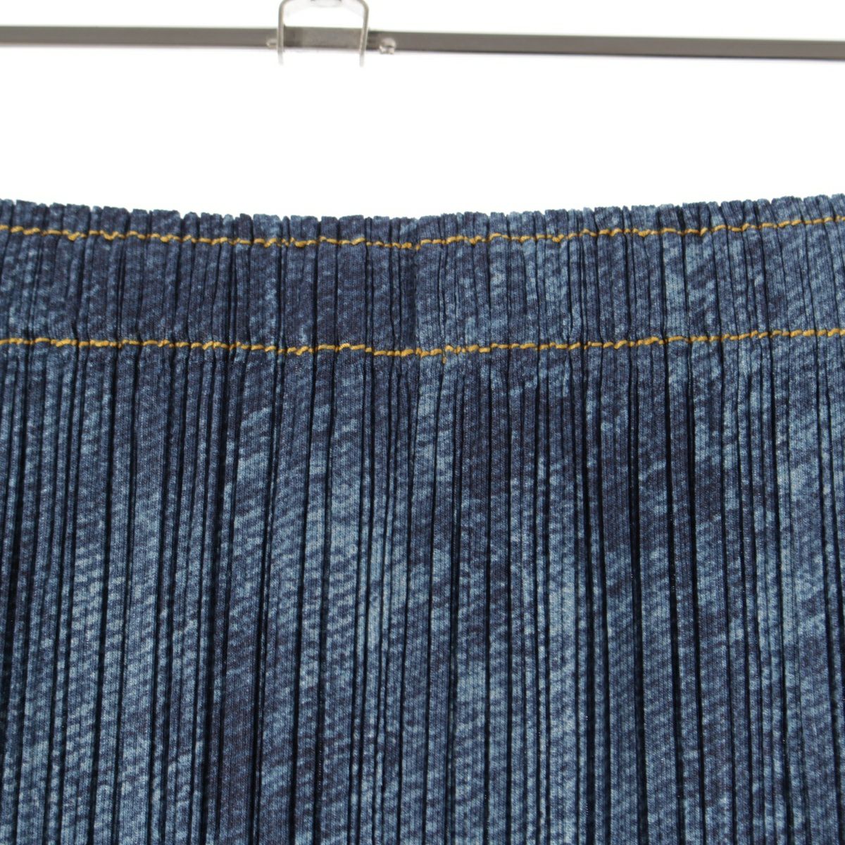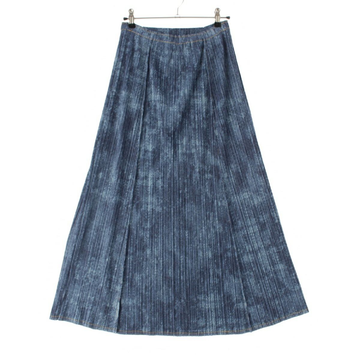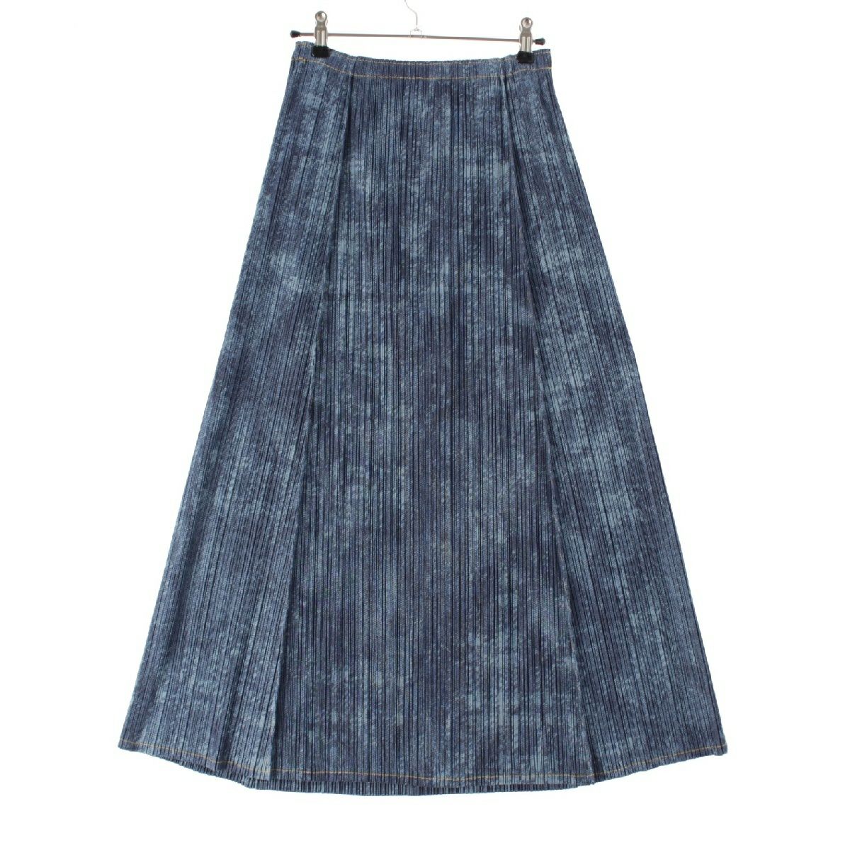 プリーツプリーズ イッセイミヤケ デニム転写 フレア ロング スカート PP53-JG516 インディゴ ブルー 4