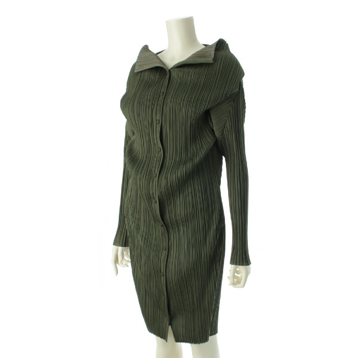 プリーツプリーズ イッセイミヤケ 2WAY ワンピース ミニドレス カーディガン コート PP64-JA422 カーキ 2