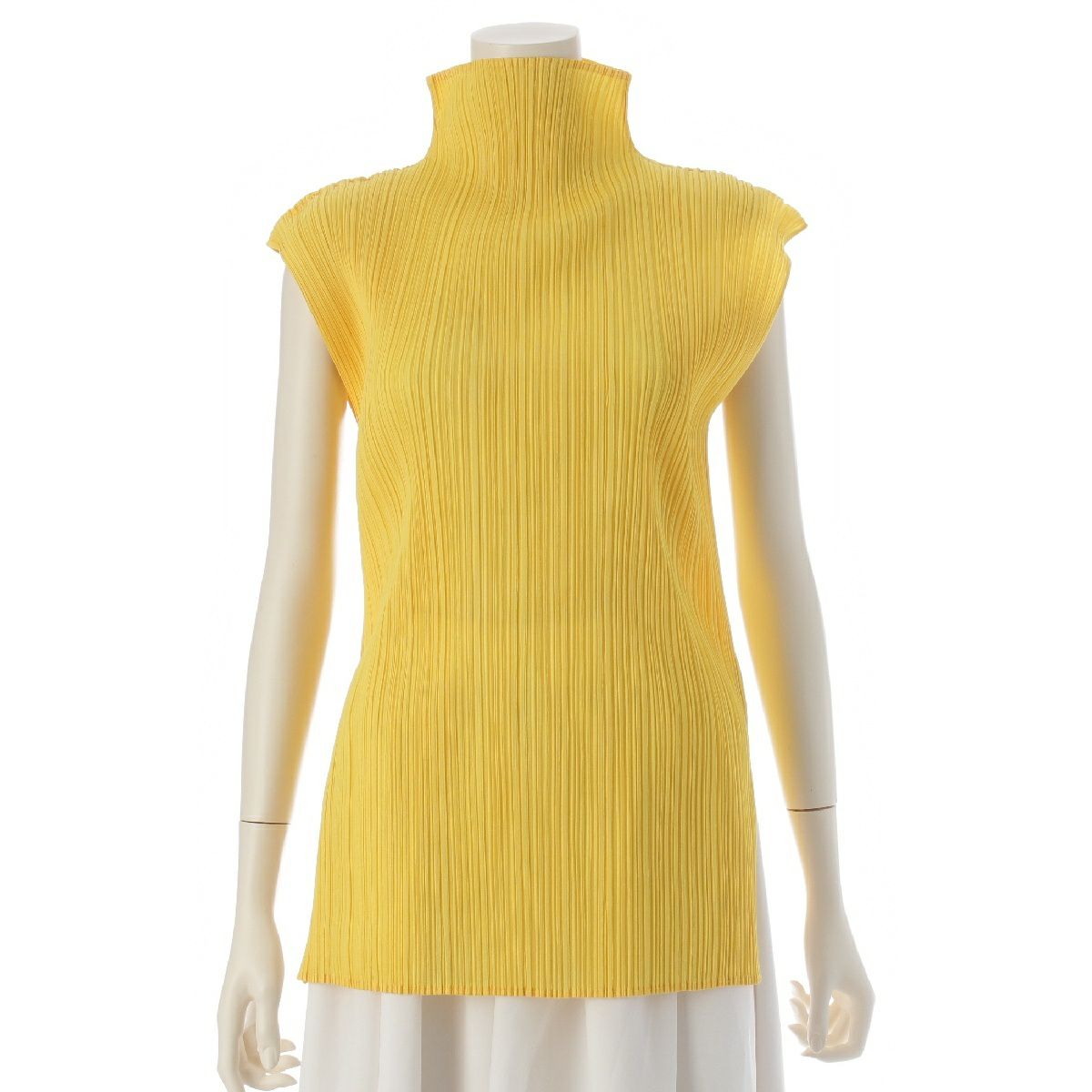 プリーツプリーズ イッセイミヤケ ボトルネック ノースリーブ トップス カットソー PP61-JK203 イエロー F