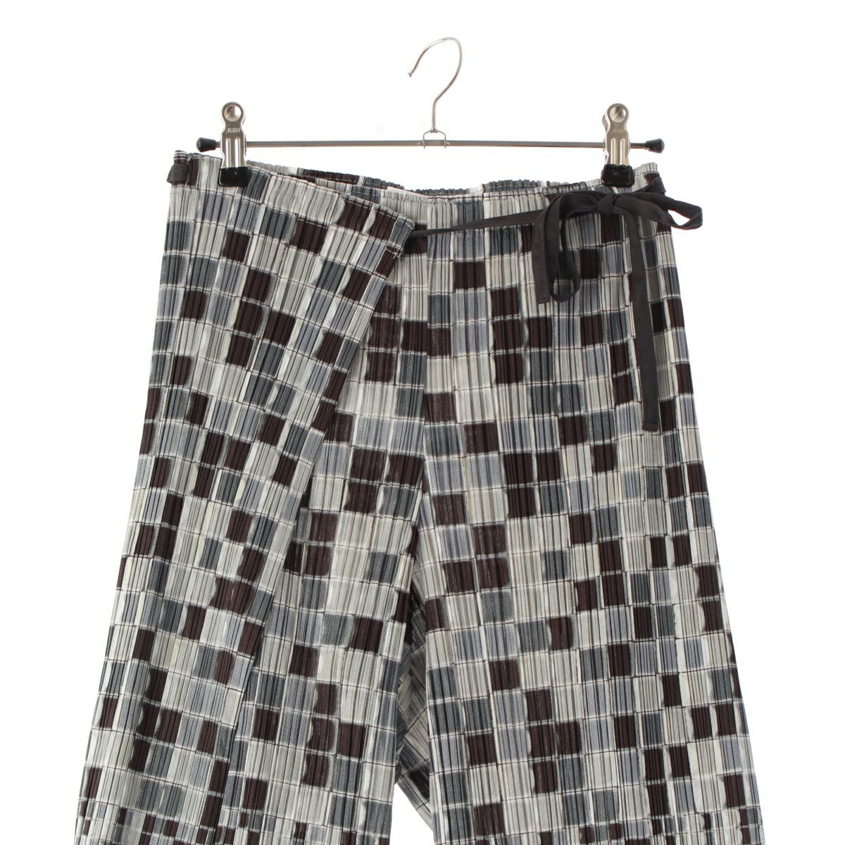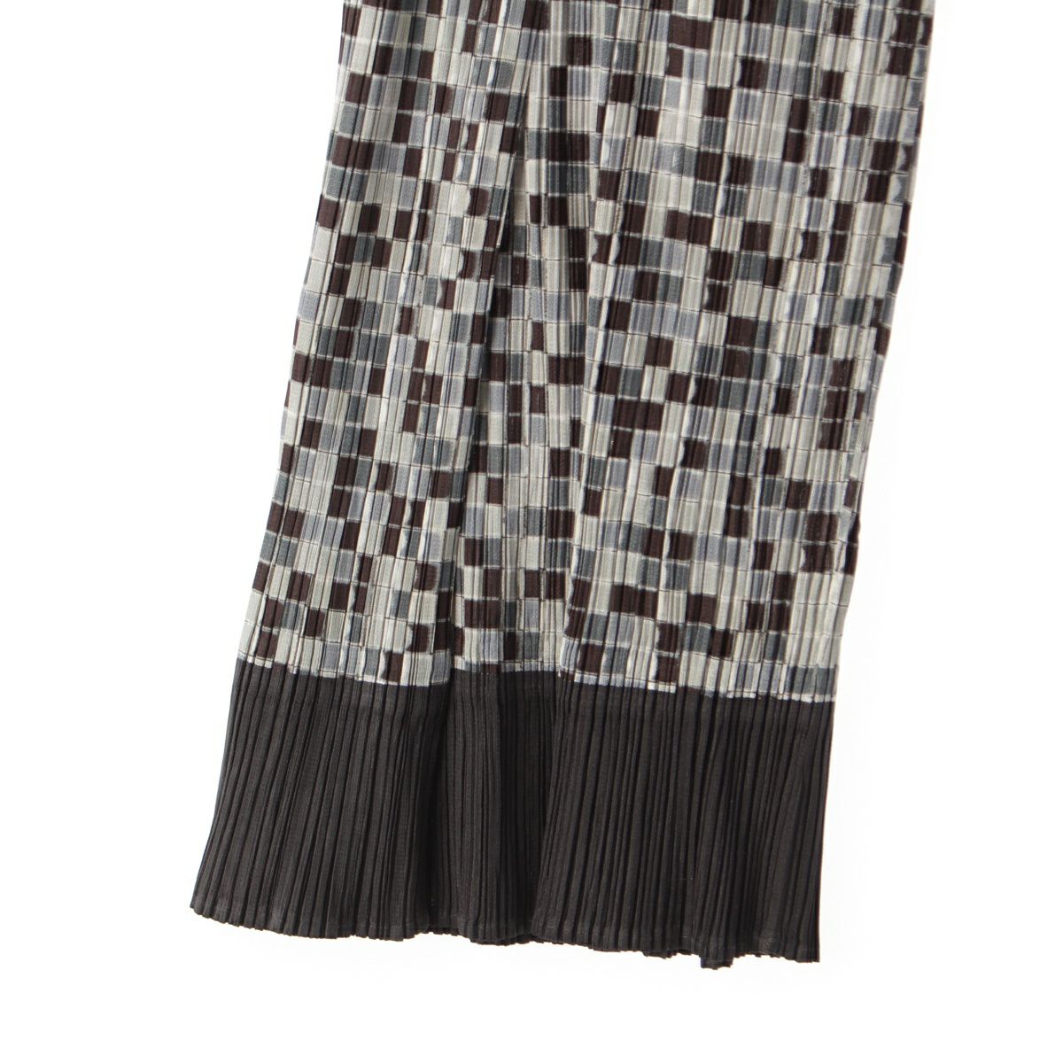 プリーツプリーズ イッセイミヤケ 14年 ブロック モザイク柄 ワイド パンツ ボトムス PP41-JF663 グレー マルチカラー 4